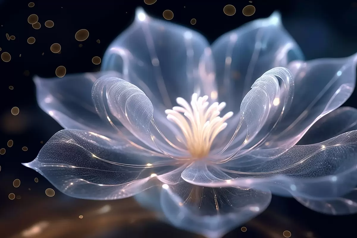 carta da parati Fiore chiaro con petali trasparenti su sfondo scuro nr. s42488