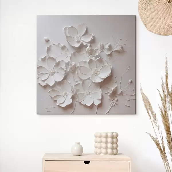 Quadri Fiori bianchi su sfondo bianco in stile pittura ad olio Nr s42516