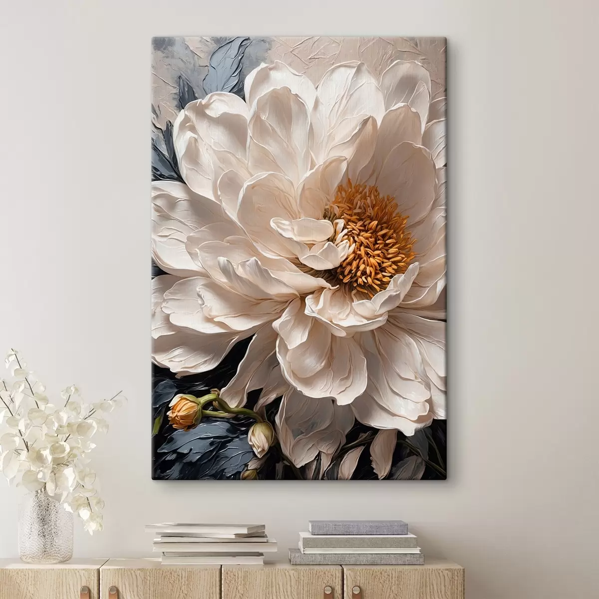 Quadri Fiore bianco su sfondo blu-beige Nr s42523
