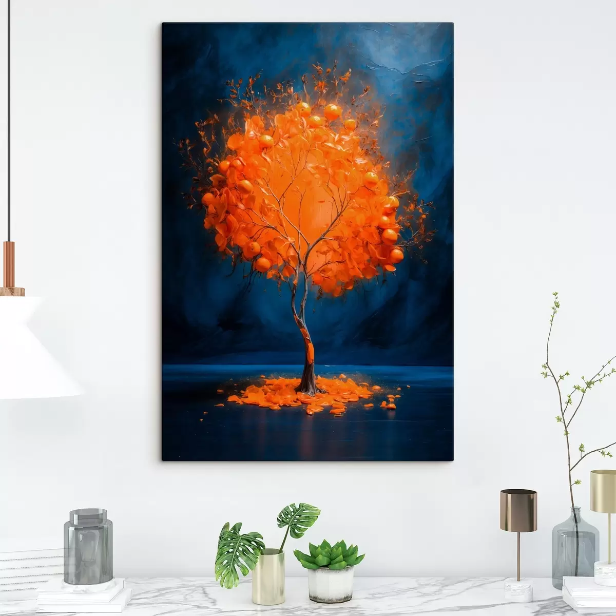 Quadri Albero arancione su sfondo blu in stile pittura acrilica Nr s42525