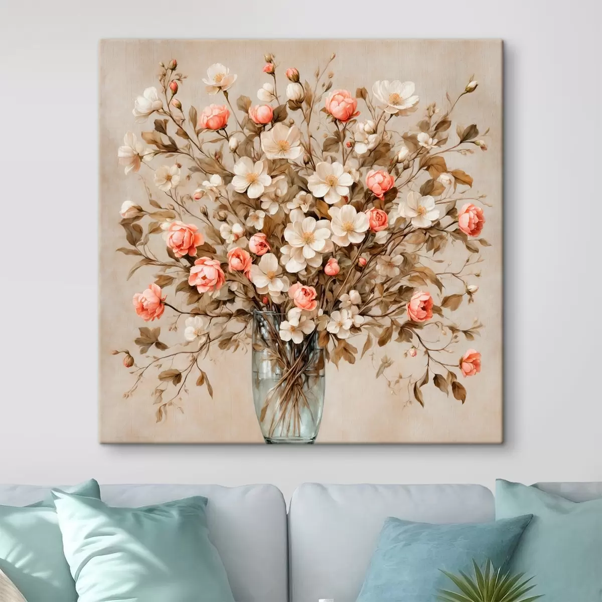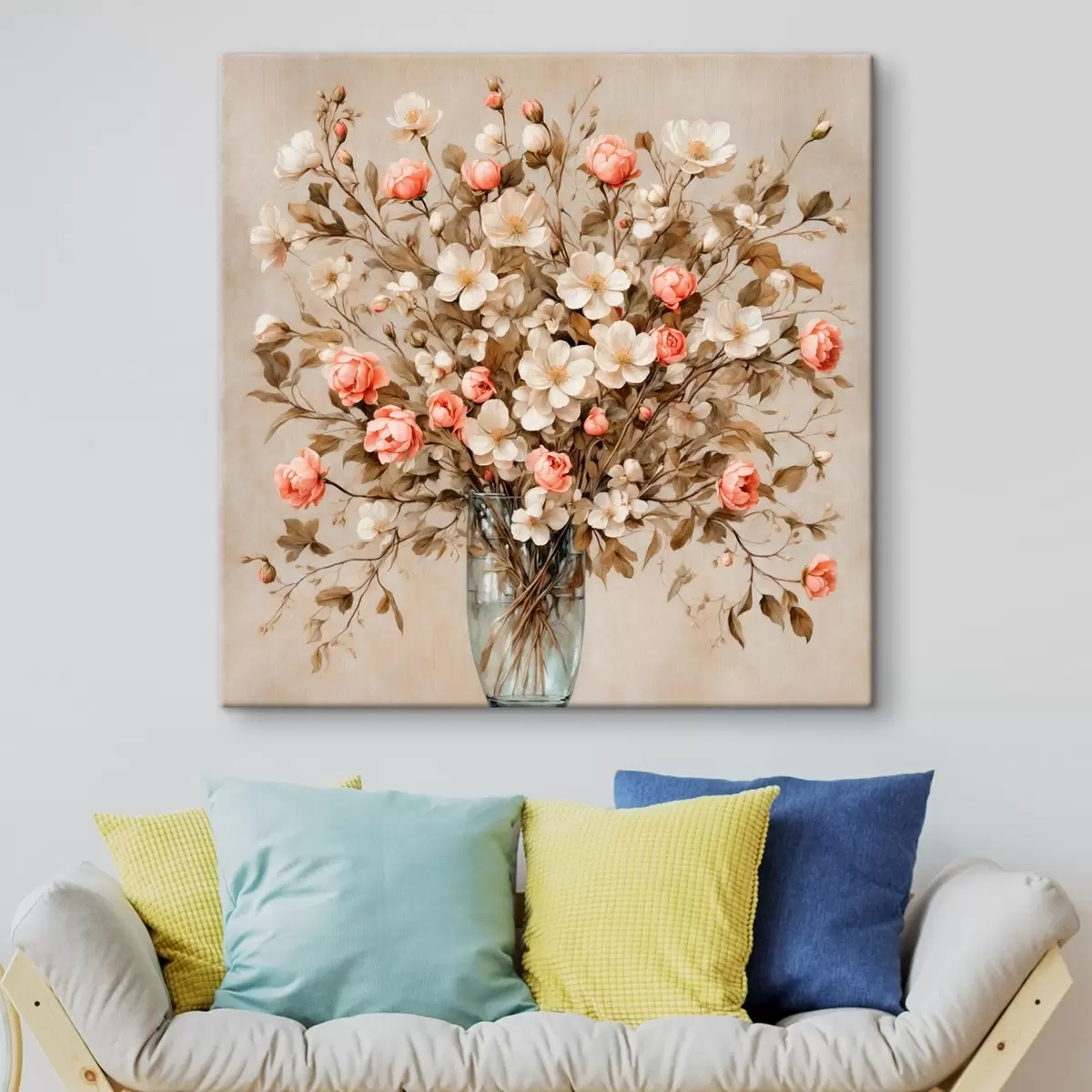 Quadri Fiori in vaso trasparente su sfondo beige Nr s42534