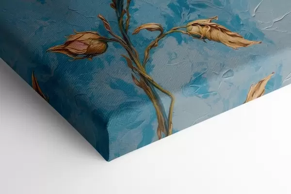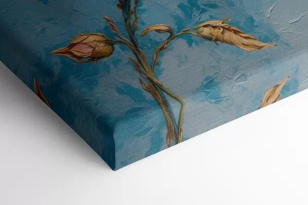 Quadri Fiore rosa su sfondo blu in stile pittura ad olio Nr s42537
