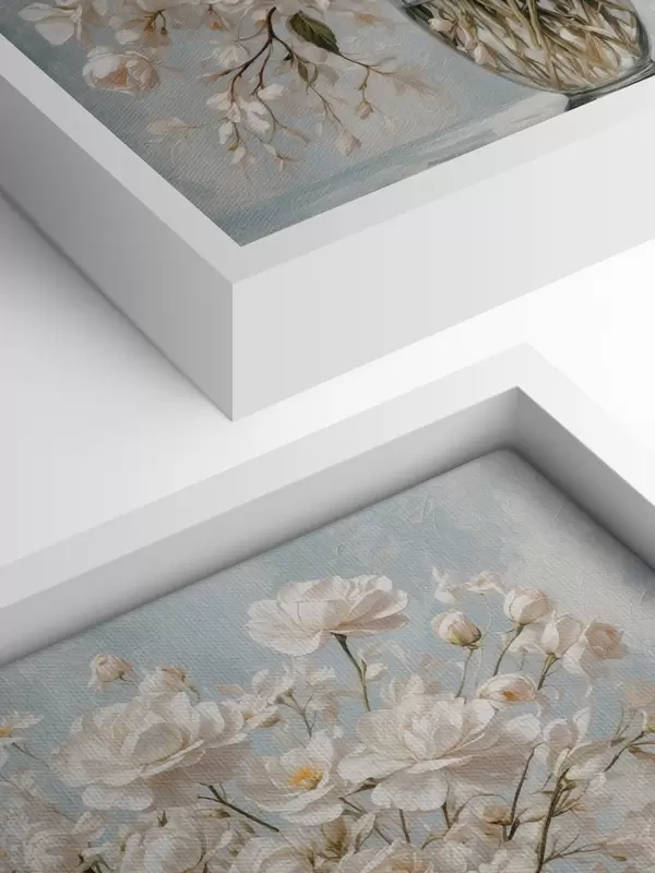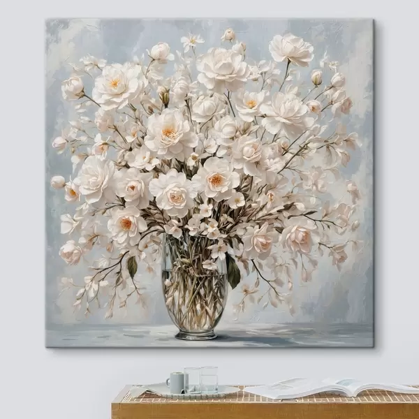 Quadri Fiori bianchi in vaso trasparente in stile pittura acrilica Nr s42545