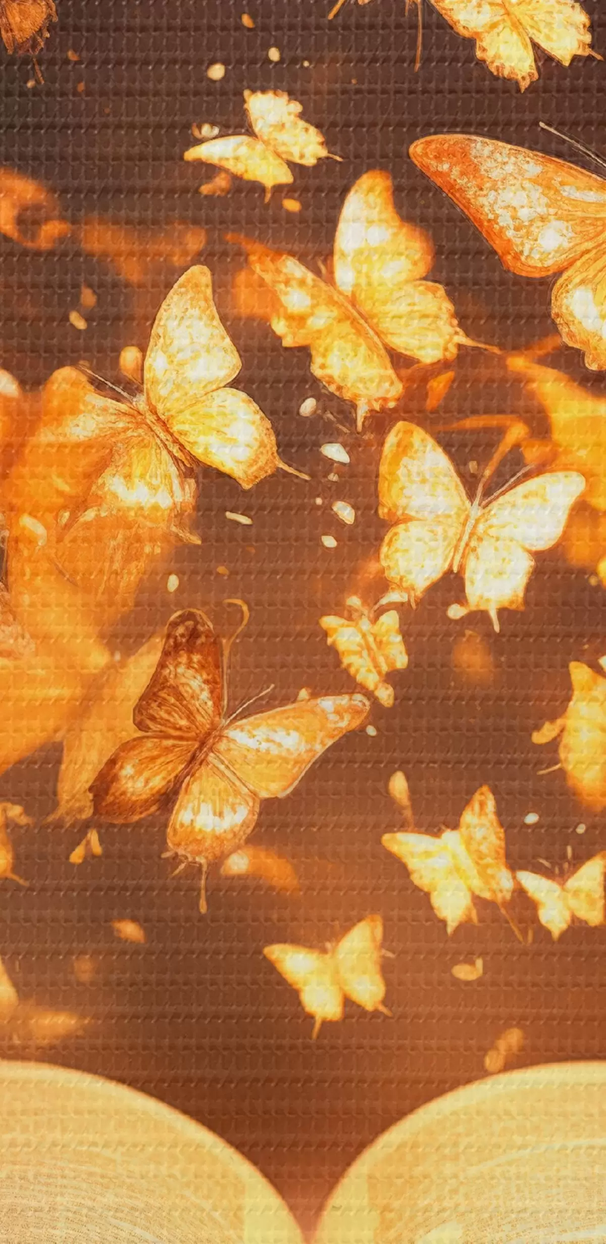 carta da parati Un libro aperto da cui emergono farfalle luminose che brillano in raggi di luce in una foresta buia e magica. nr. s42573
