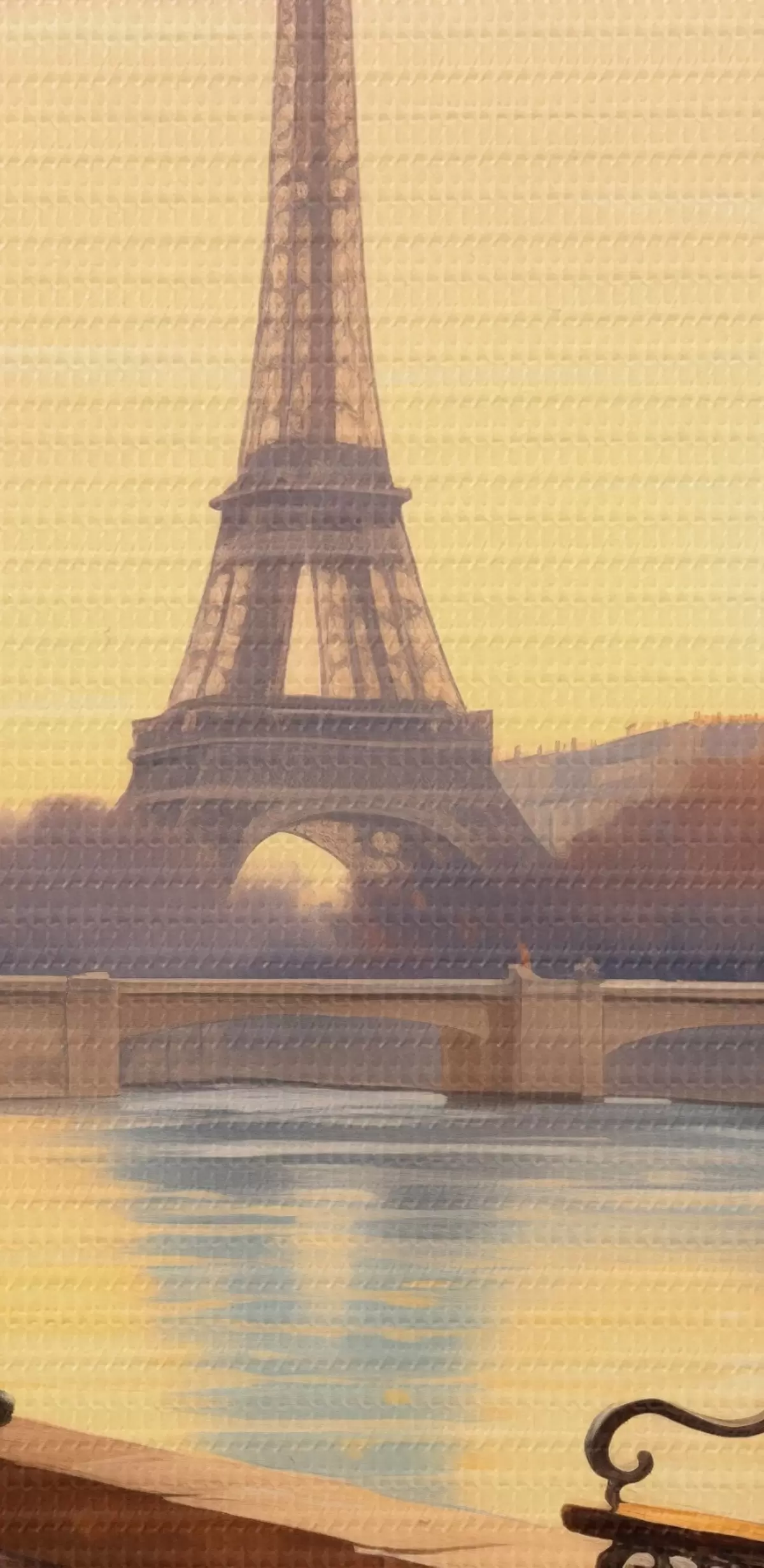 carta da parati Autunno a Parigi con vista sulla Torre Eiffel, il lungofiume della Senna ricoperto di foglie, panchine e lampioni che aggiungono un tocco romantico all'atmosfera. nr. s42577