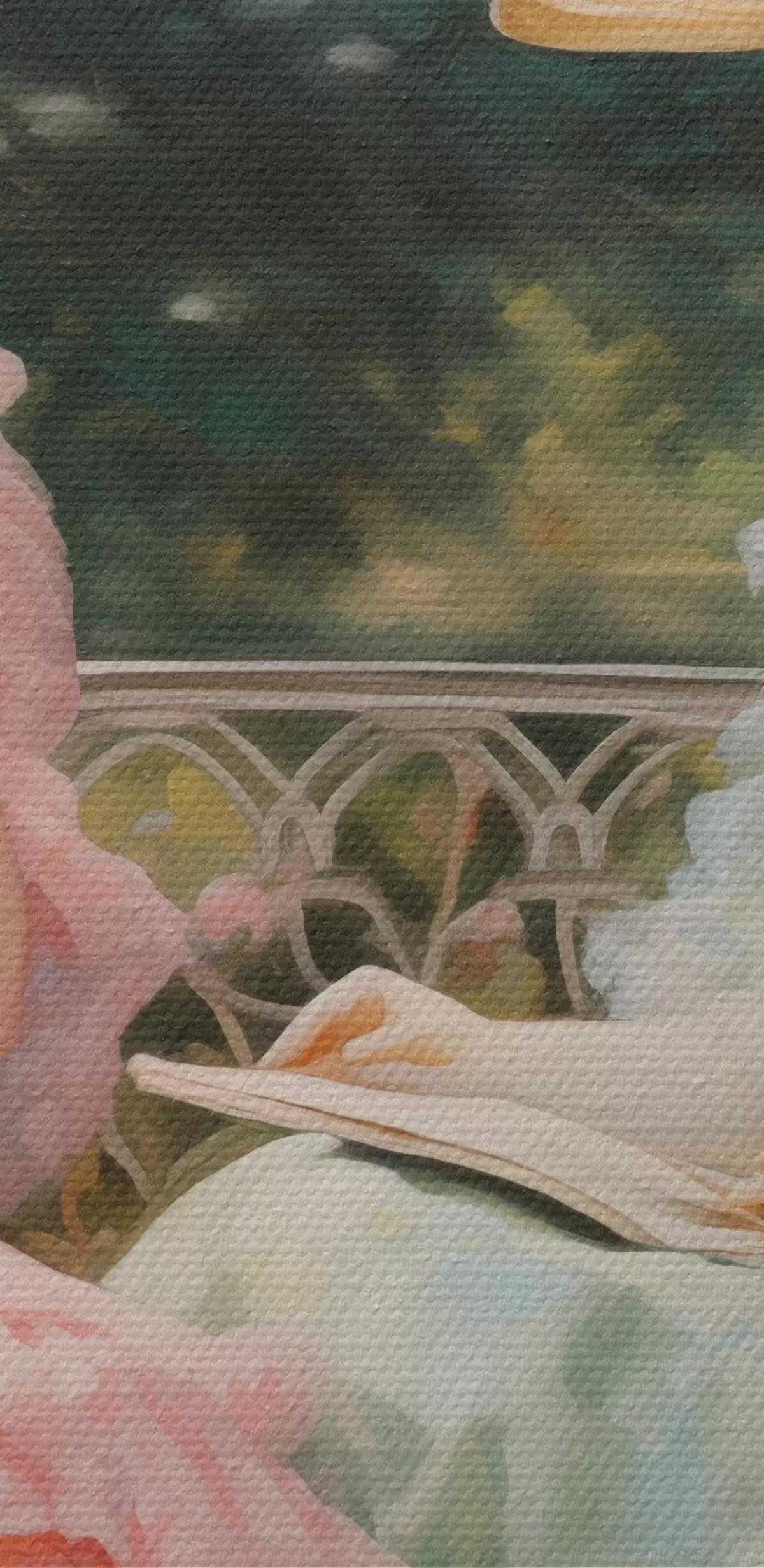 La fine trama dei fili di questa tela ricorda la superficie delle tele degli artisti professionisti.