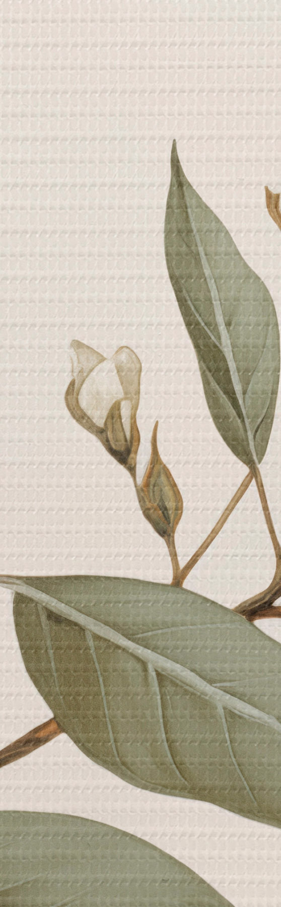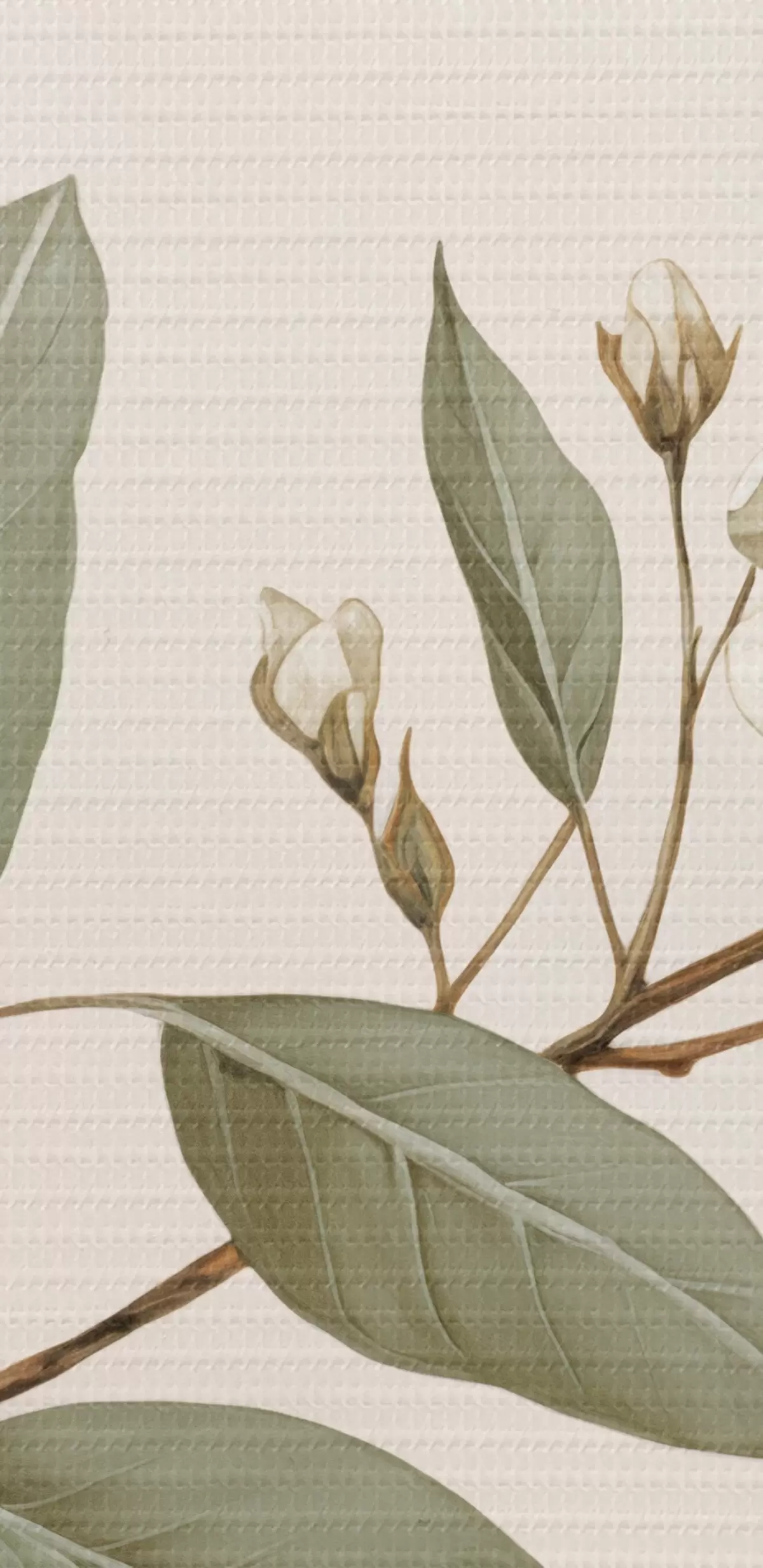 carta da parati Un ramo delicato con fiori bianchi e foglie verdi su uno sfondo chiaro, con dettagli morbidi e uno stile elegante. nr. s42583