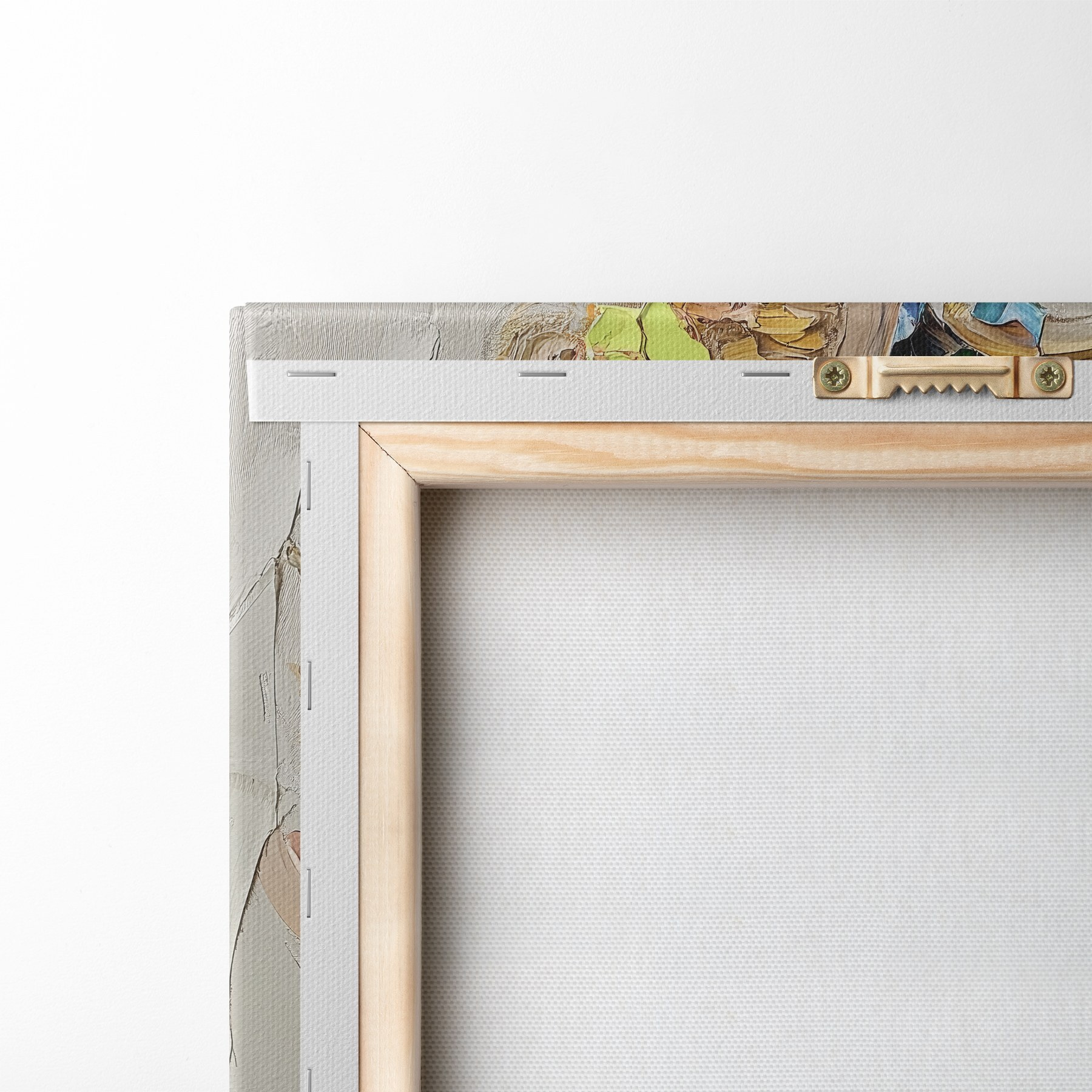 Vendiamo quadri su barella: si tratta di un telaio di legno su cui viene tesa la tela. Questo quadro non ha bisogno di essere incorniciato; è possibile appenderlo direttamente alla parete.