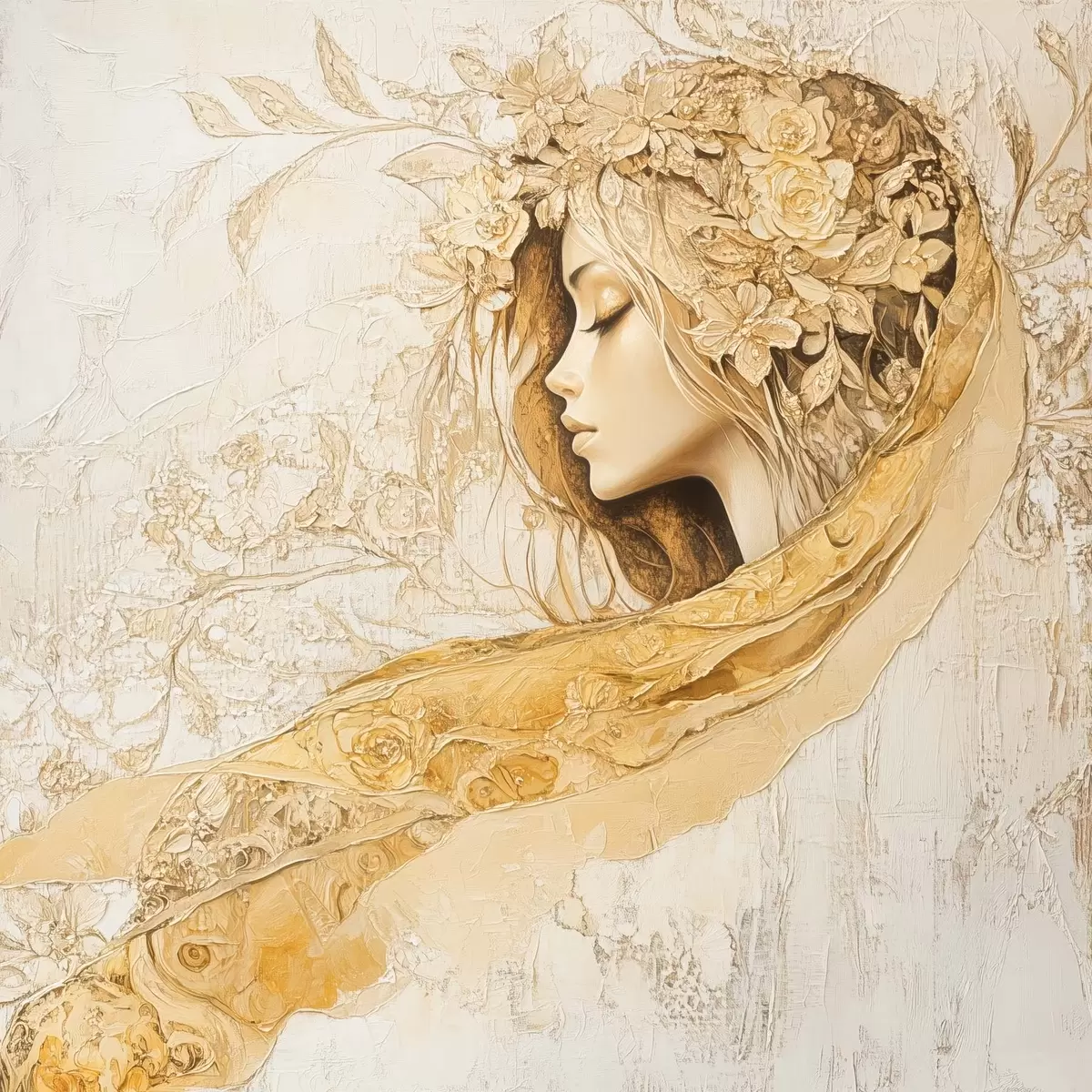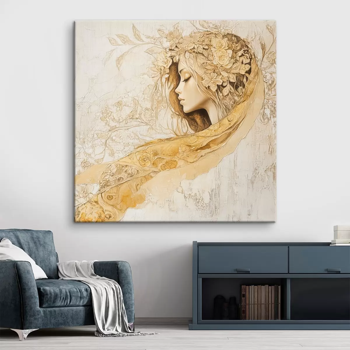 Quadri Ragazza gentile nello stile della pittura ad olio con fiori Nr s42616