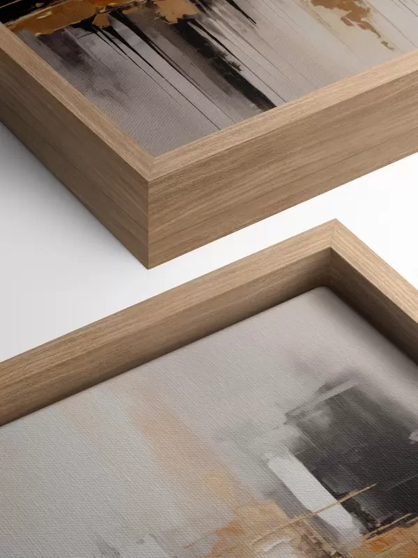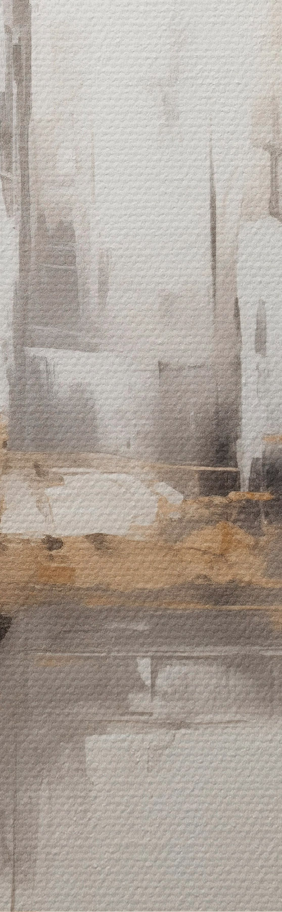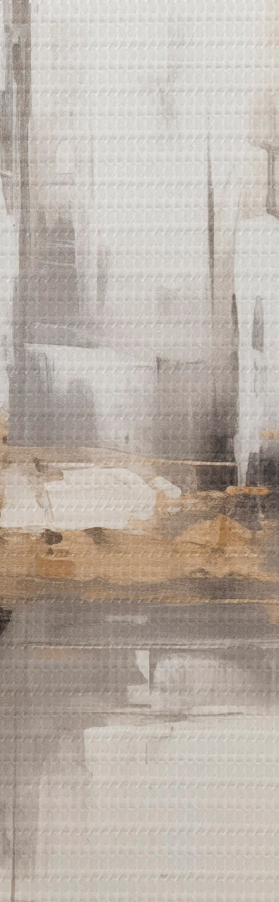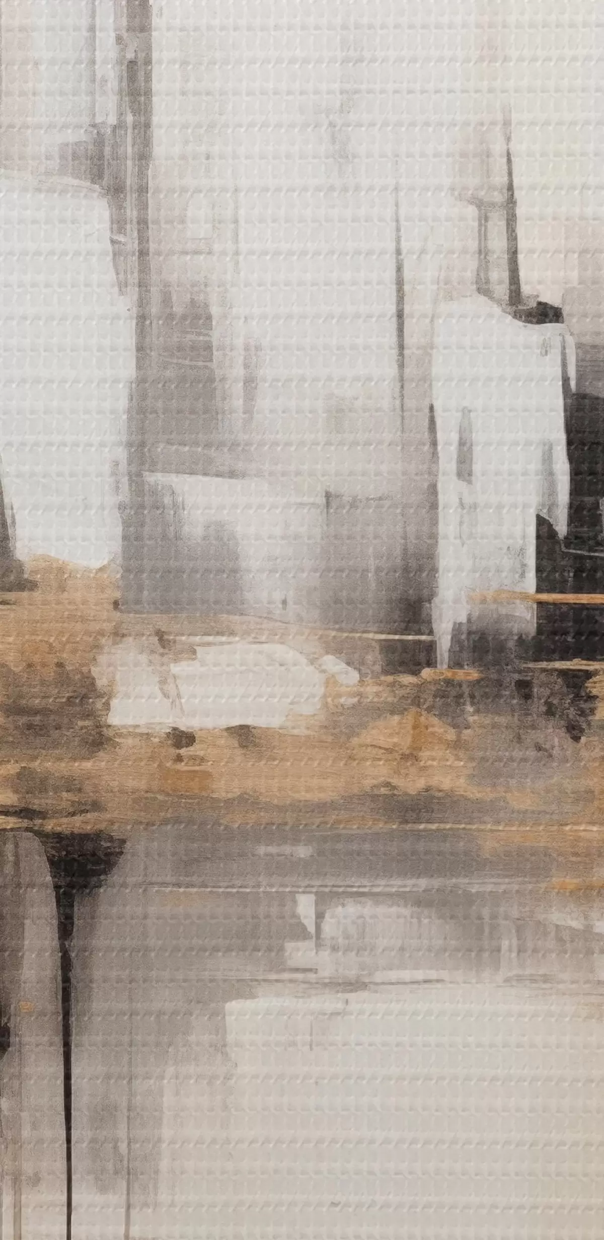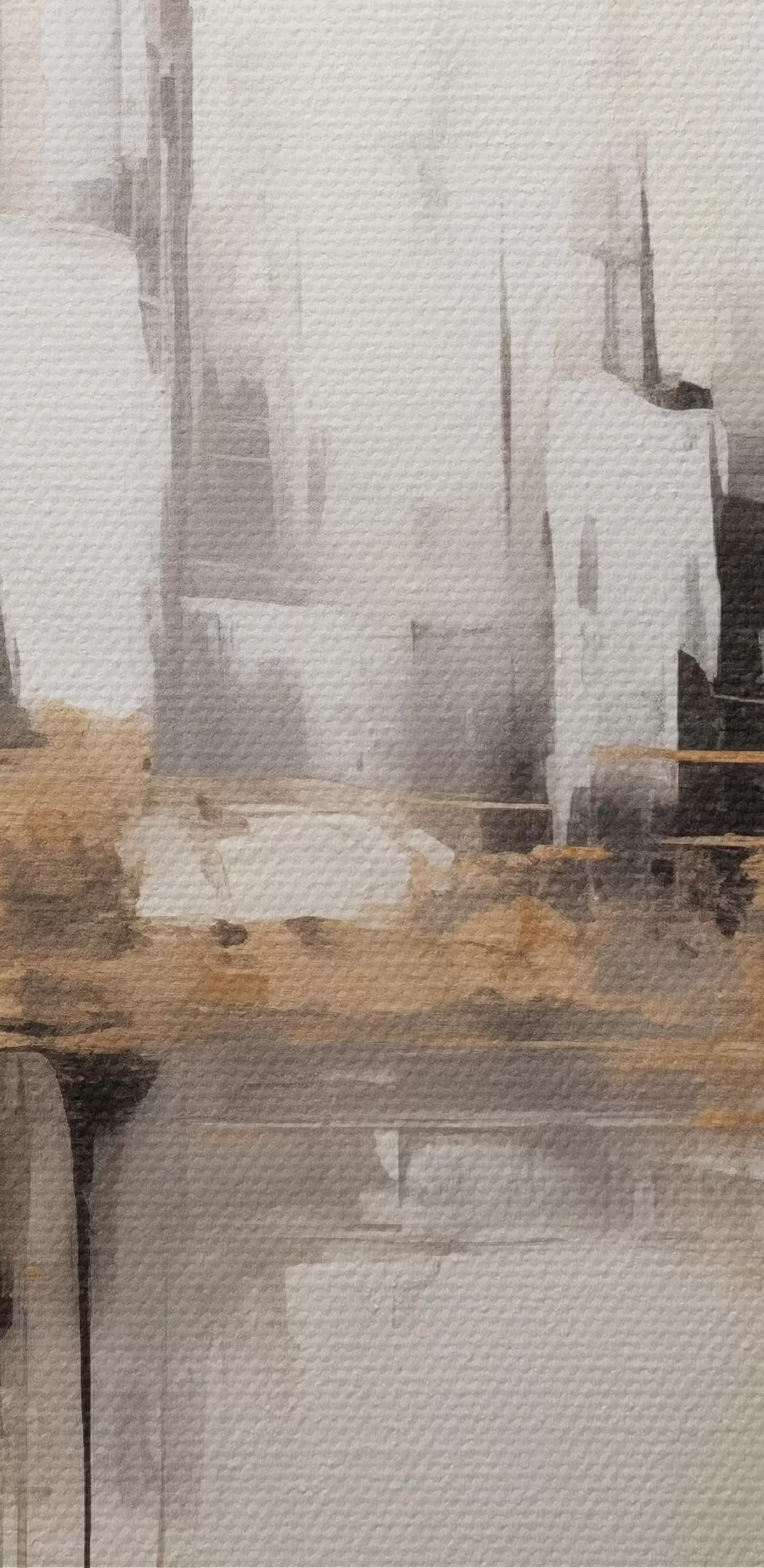 Quadri Un paesaggio urbano astratto con riflessi di edifici nell'acqua, creato in toni neutri con accenti di tonalità calde. Nr s42628