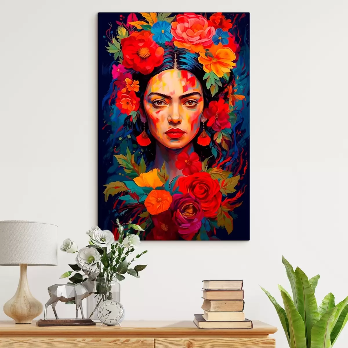 Quadri Ritratto di donna con cornice floreale in stile astratto luminoso Nr s42653