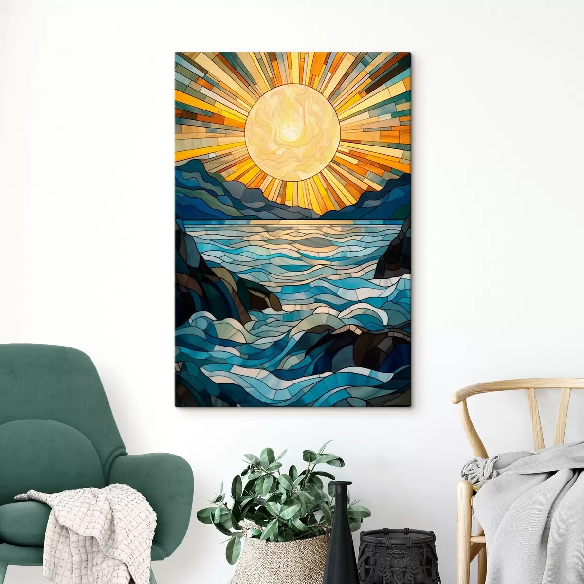 Quadri Sole e onde nello stile delle vetrate artistiche Nr s42654