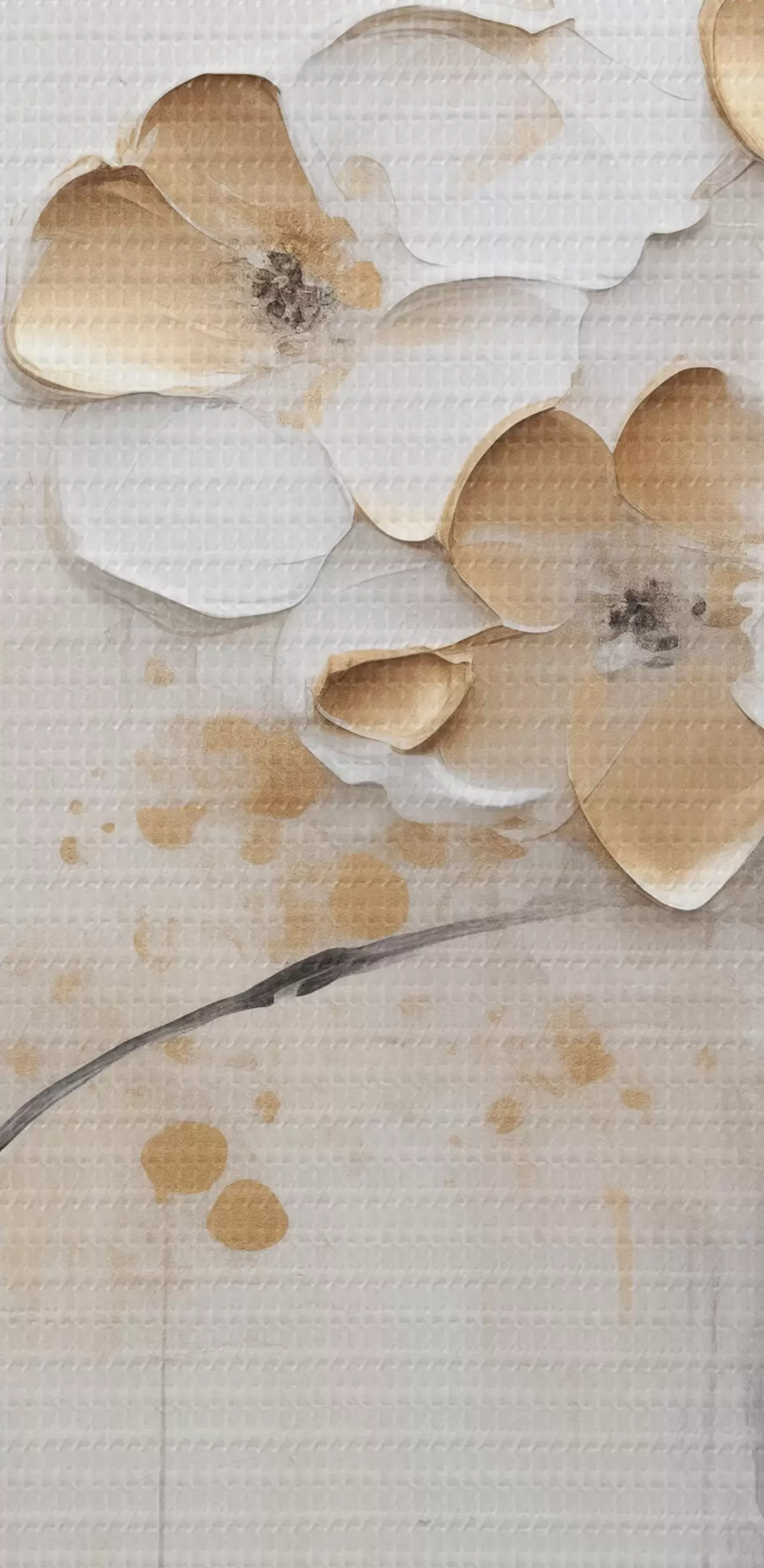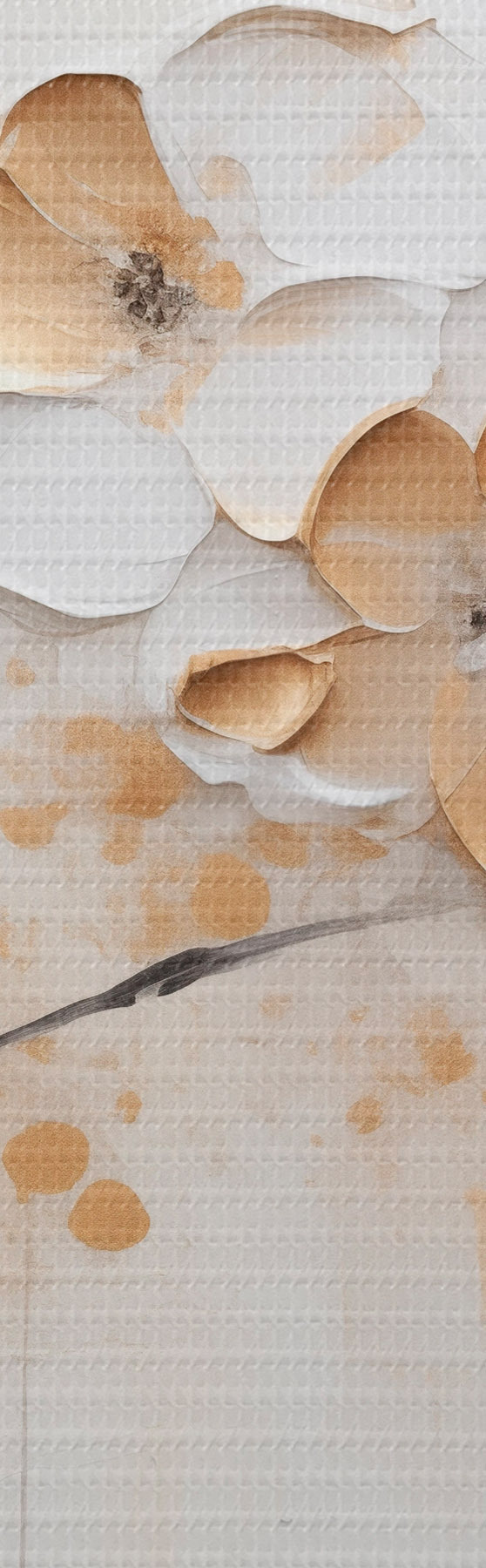 carta da parati Fiori con petali strutturati su uno sfondo morbido e tenue con spruzzi di colore astratto e linee verticali  nr. s42713