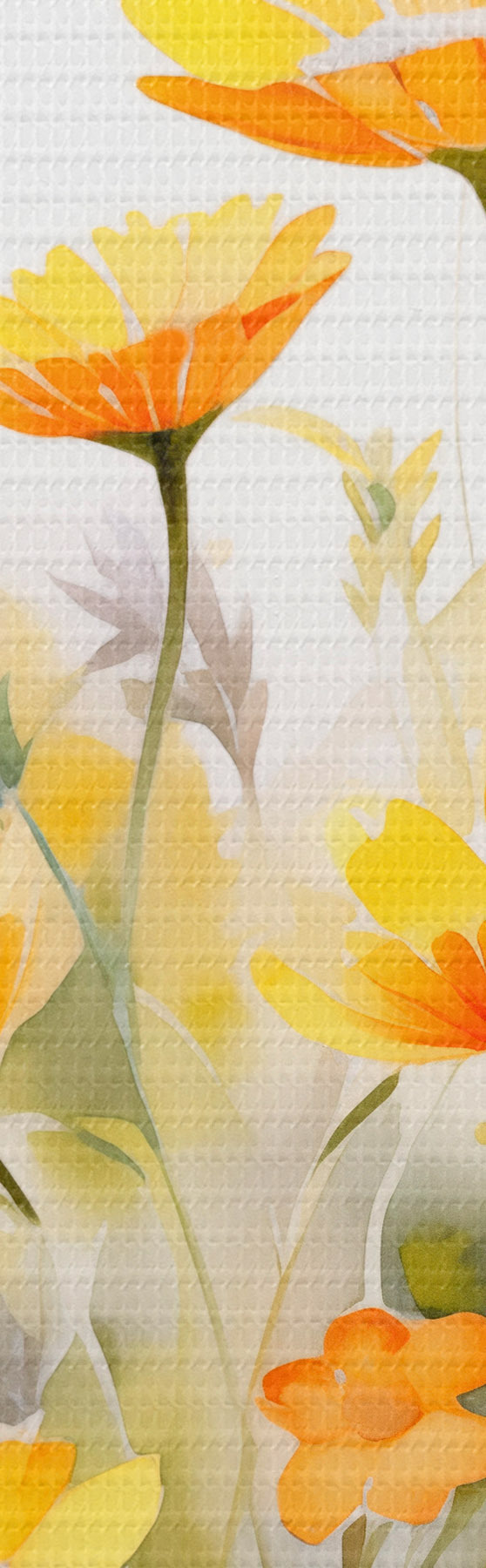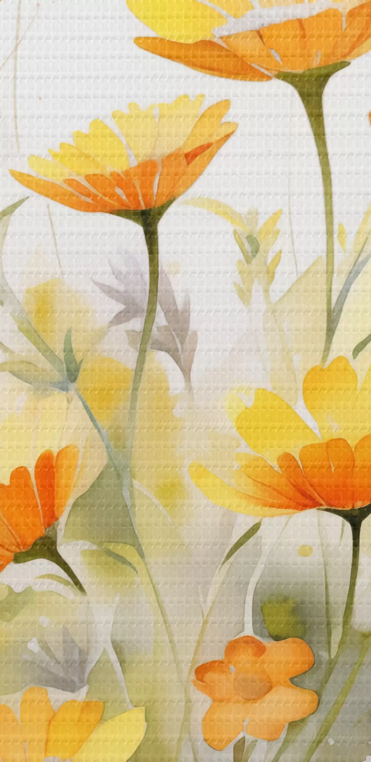 carta da parati Un vivace campo di fiori ad acquerello con margherite bianche e arancioni e una farfalla che svolazza nelle vicinanze nr. s42714