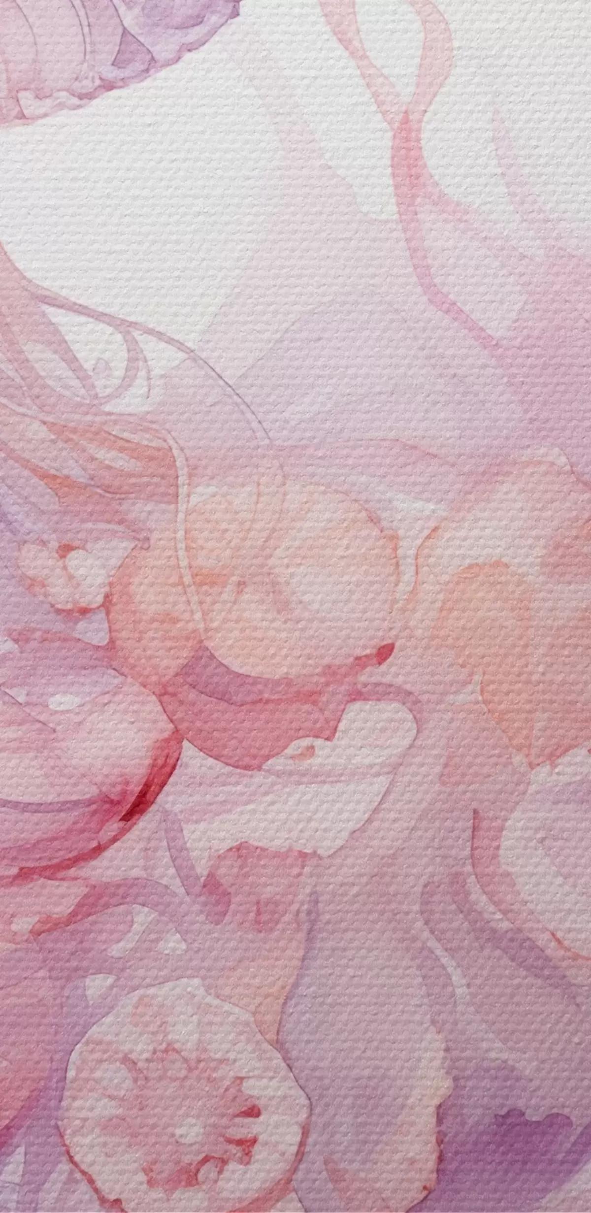carta da parati Meduse rosa che fluttuano in un turbinio di colori rosa e viola, circondate da forme astratte  nr. s42730