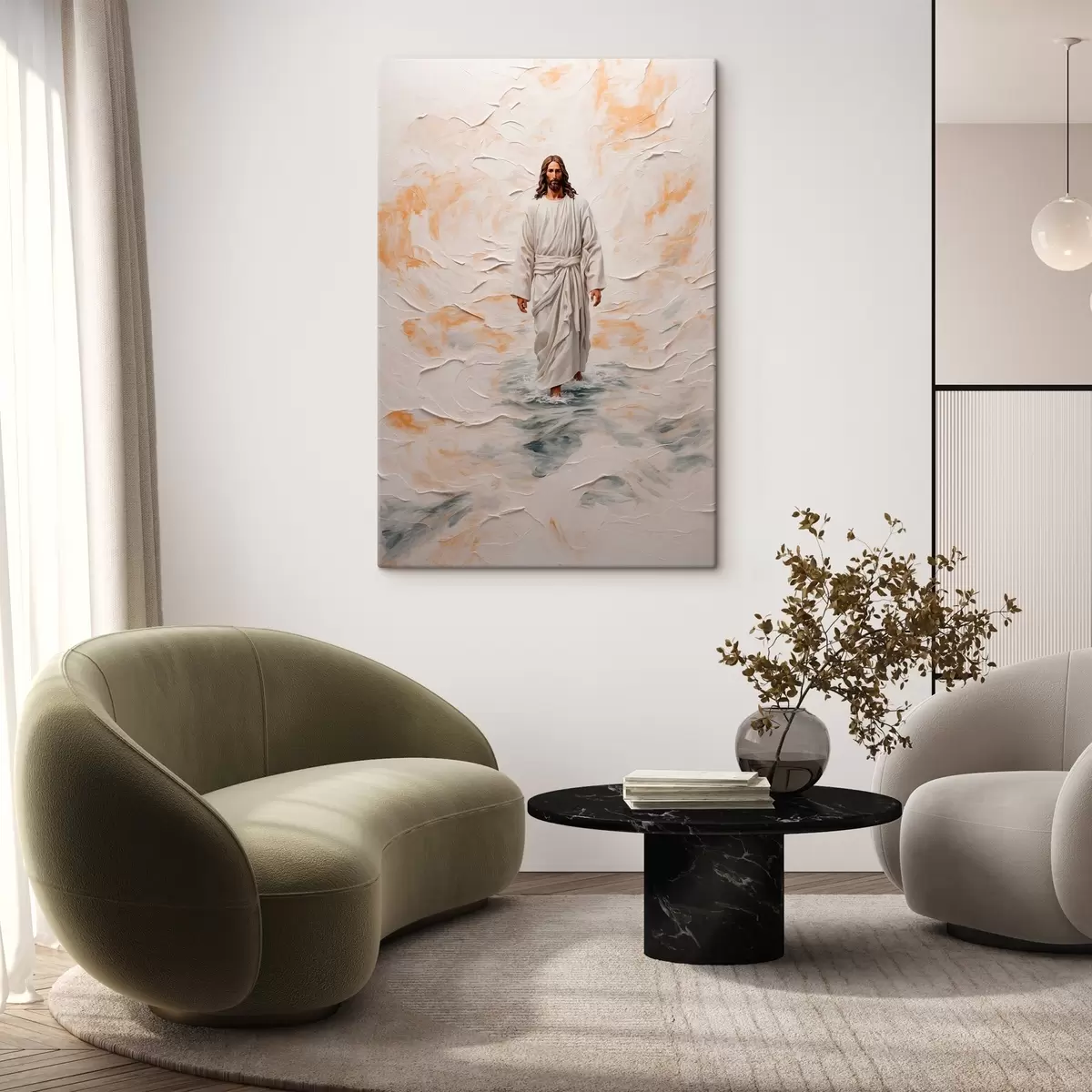 carta da parati Gesù Cristo che cammina sull'acqua in stile pittura ad olio nr. s42769