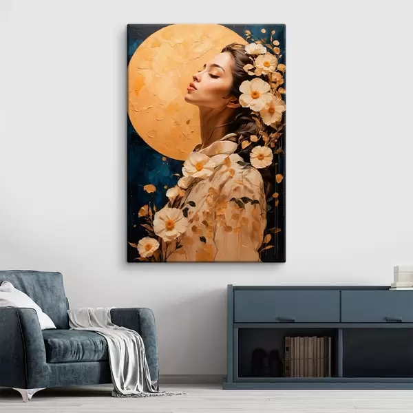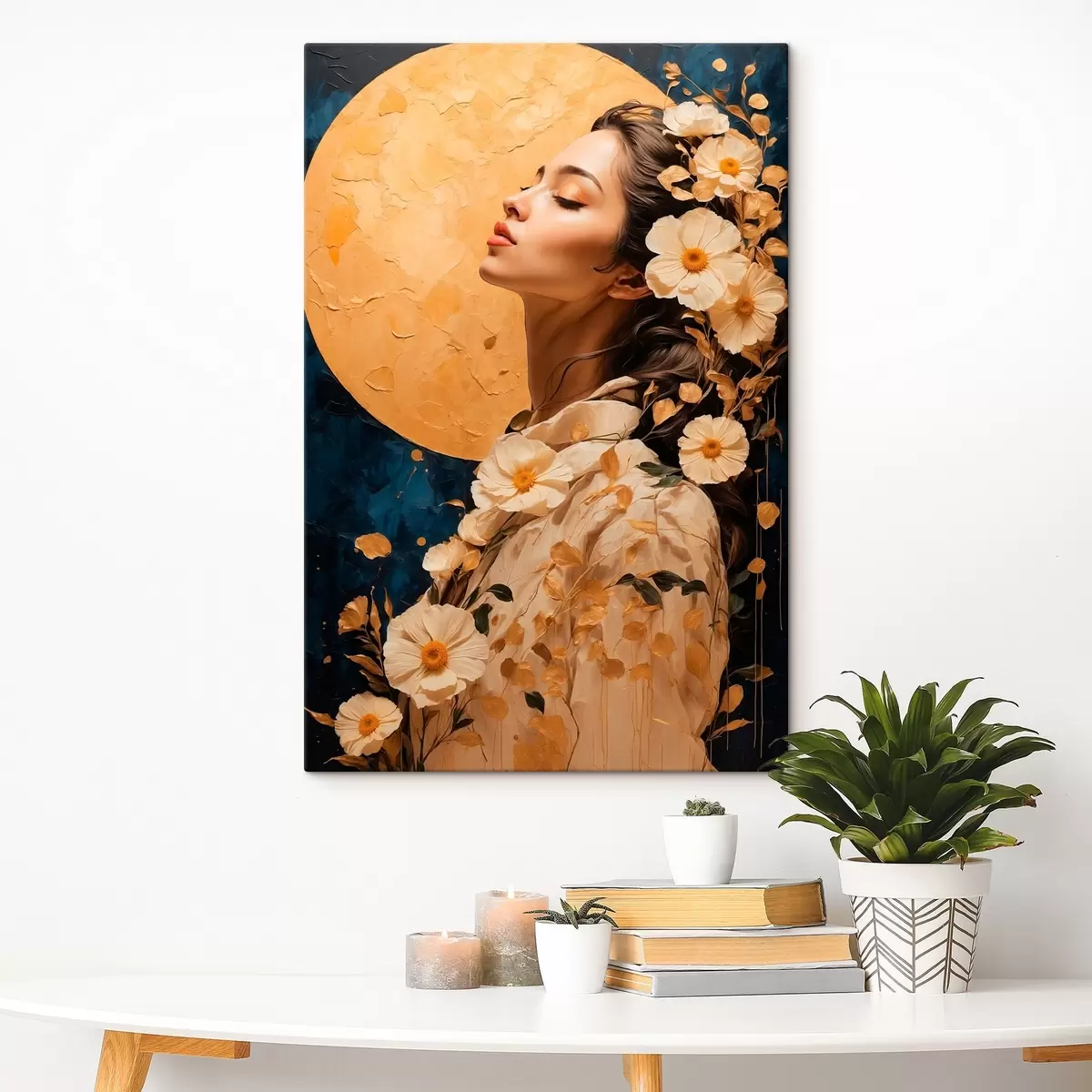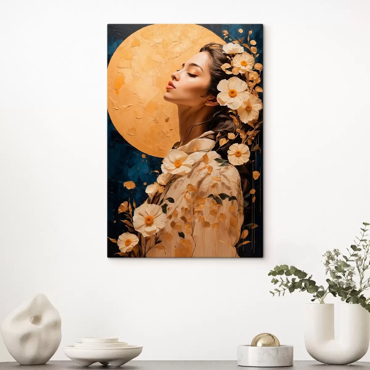 Quadri Ragazza con fiori sullo sfondo della luna Nr s42774