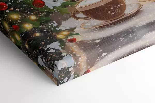 Quadri Accogliente caffè invernale, tazze di caffè, stile acrilico, architettura della città vecchia Nr s42795
