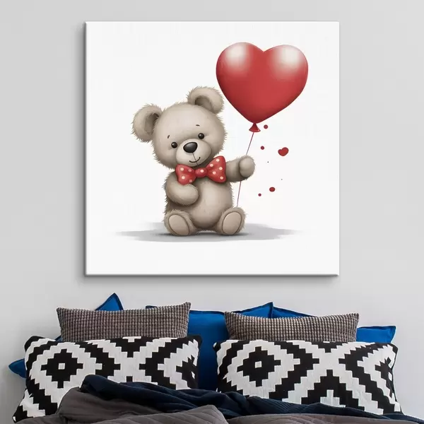 Quadri Simpatico orso con palloncino a forma di cuore rosso Nr s42879