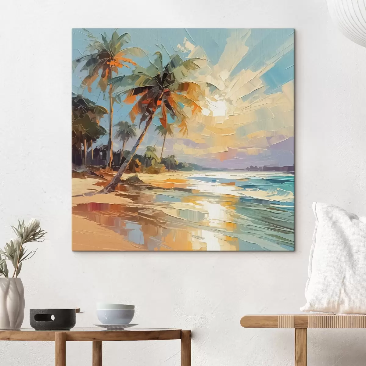 Quadri Palme in riva al mare imitazione di pittura Nr s42897
