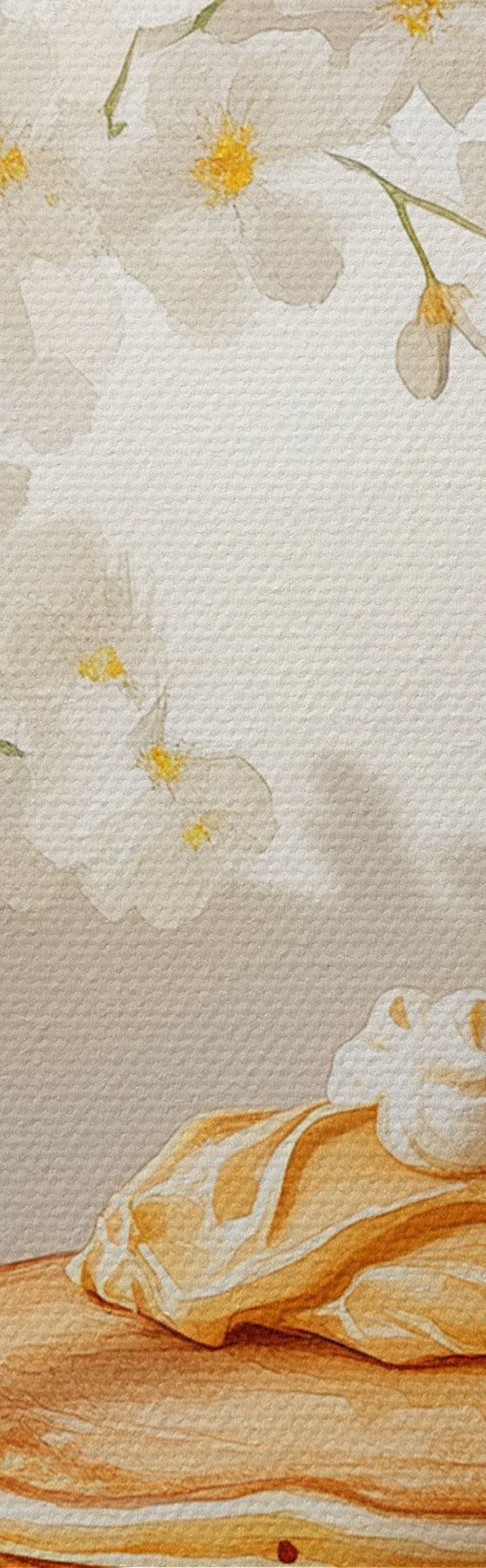 carta da parati Deliziosi pancake con burro di arachidi, stile acquerello, vaso con fiori bianchi nr. s43063