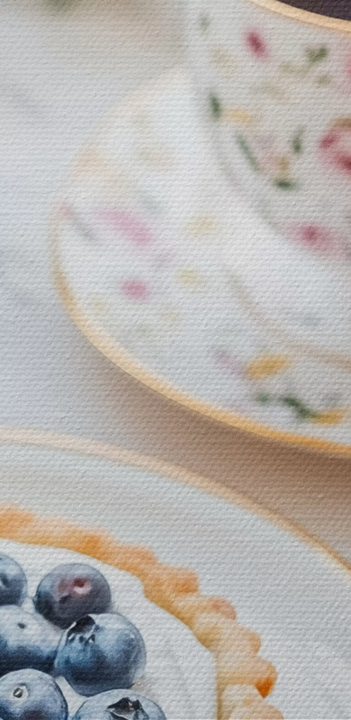 Quadri Cupcake ai mirtilli con tazza di tè, stile boho, rose rosa Nr s43066
