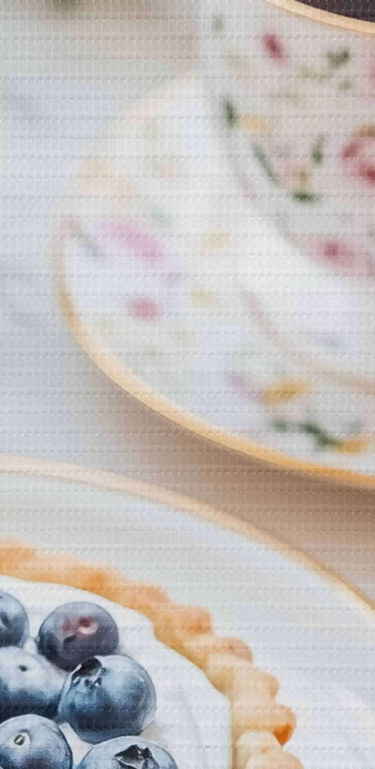 carta da parati Cupcake ai mirtilli con tazza di tè, stile boho, rose rosa nr. s43066