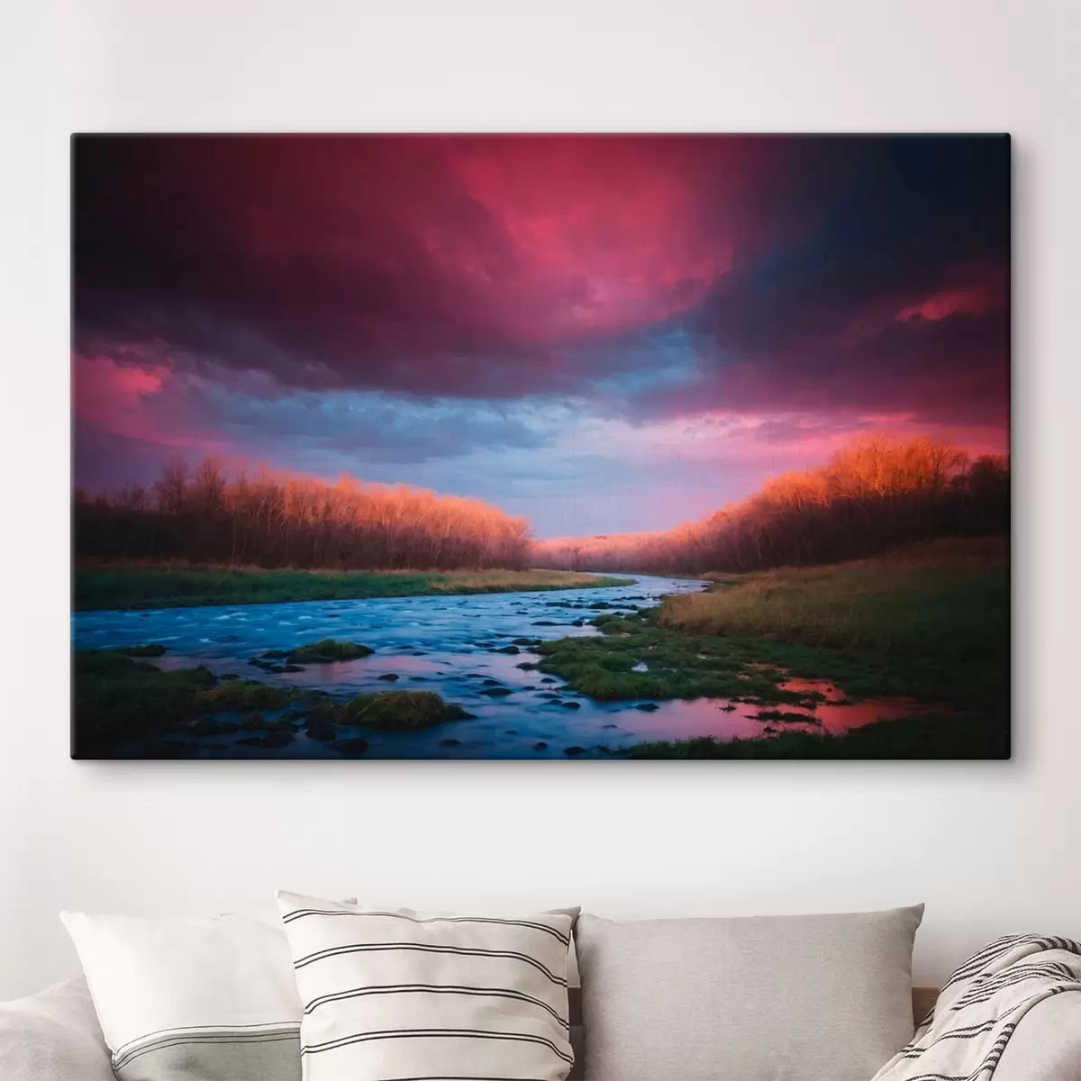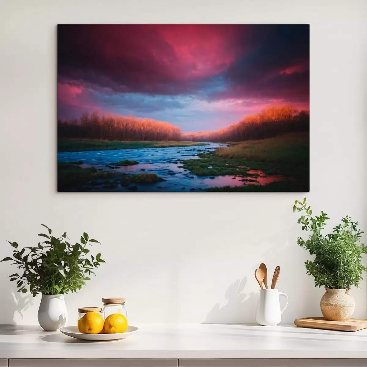 Quadri Ruscello nel campo sullo sfondo del cielo viola Nr s43120