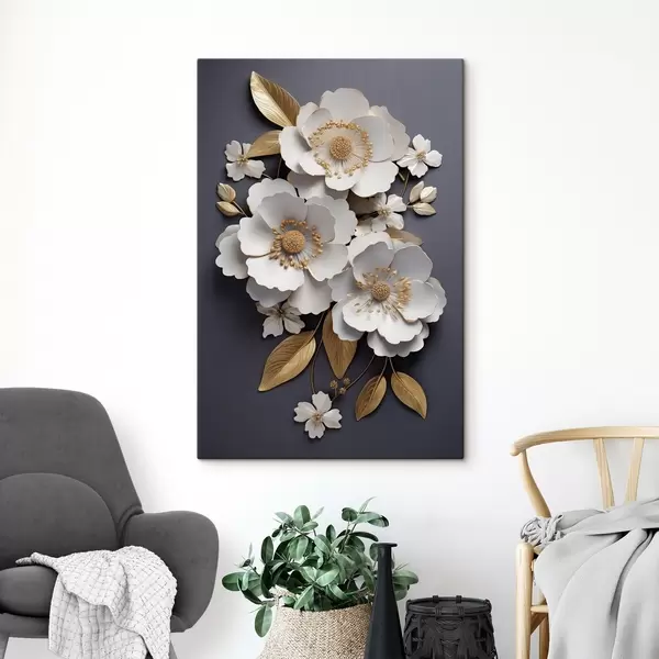 Quadri Tre fiori bianchi su sfondo scuro Nr s43129
