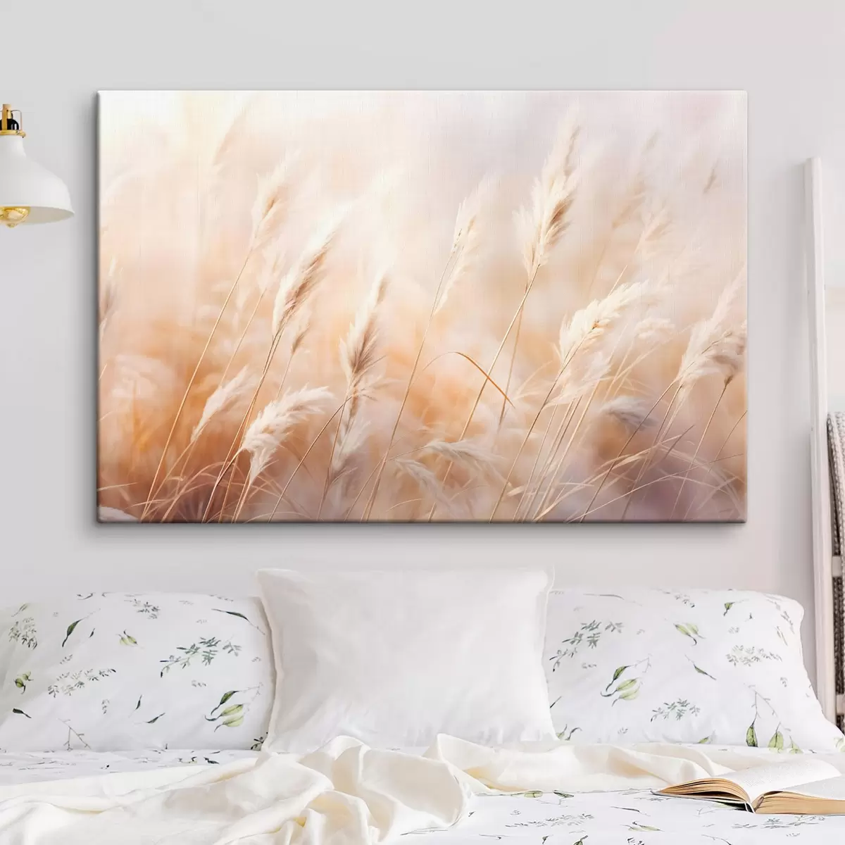 Quadri Erba della Pampa con una luce morbida e diffusa, che crea un'atmosfera calda, lo sfondo è una miscela di colori pastello Nr s43157
