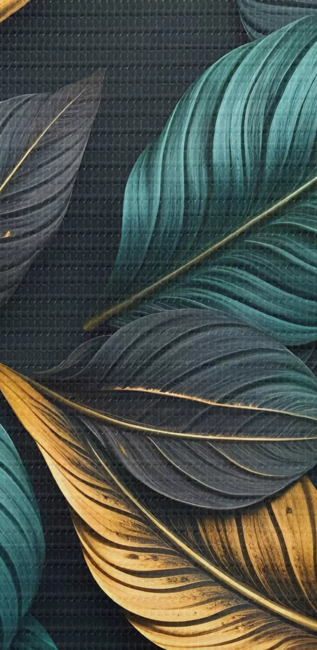carta da parati Foglie verde scuro, gialle e nere con venature scure, su sfondo scuro, elegante atmosfera tropicale nr. s43164