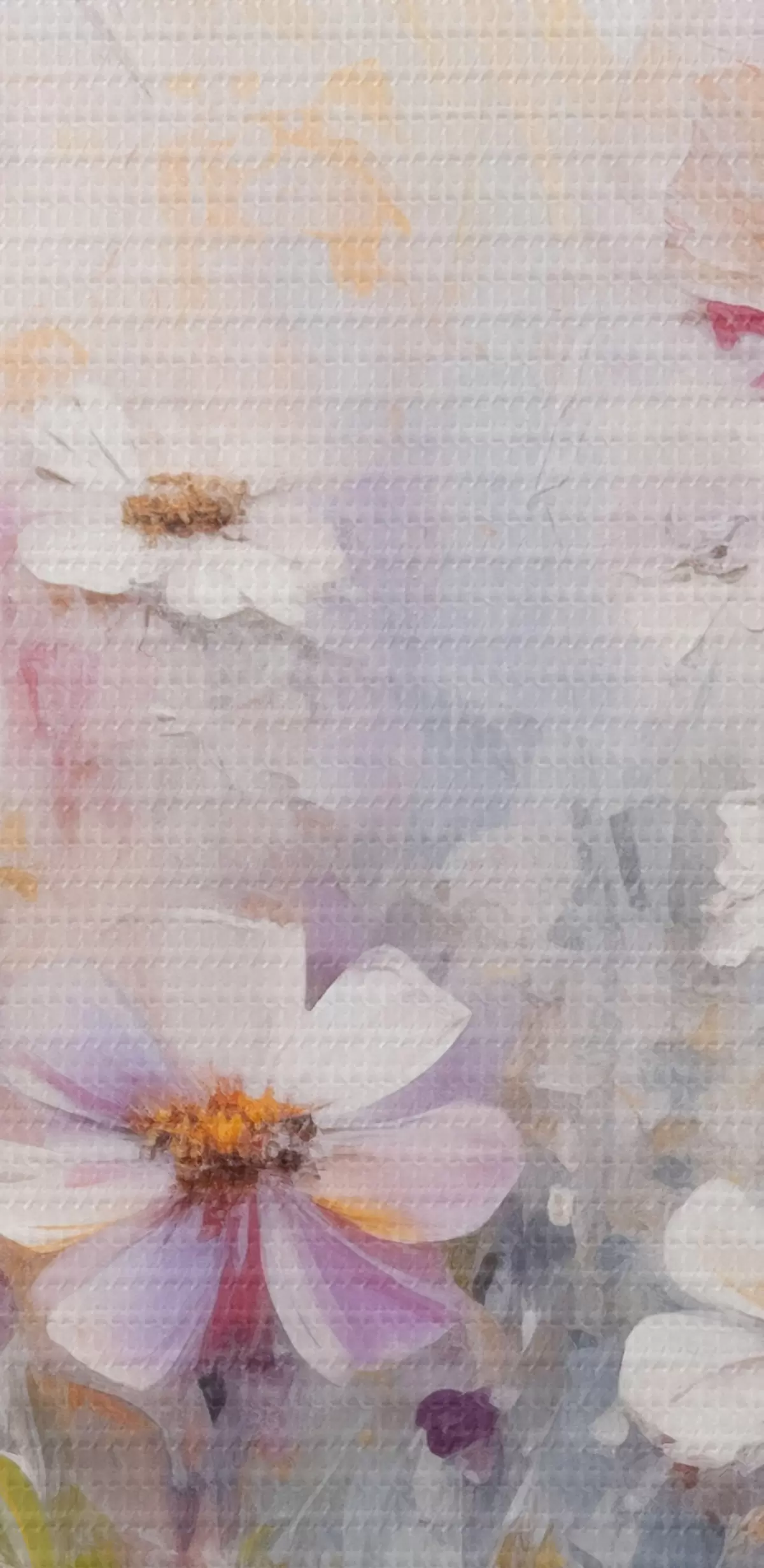 Quadri Campo astratto strutturato di fiori bianchi e rosa, colori pastello tenui, pennellate delicate, prato floreale Nr s43170