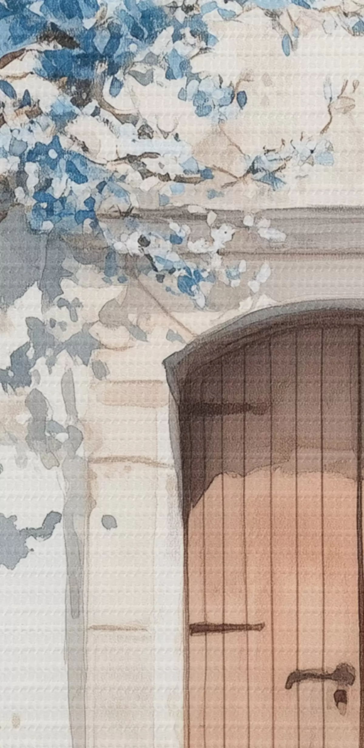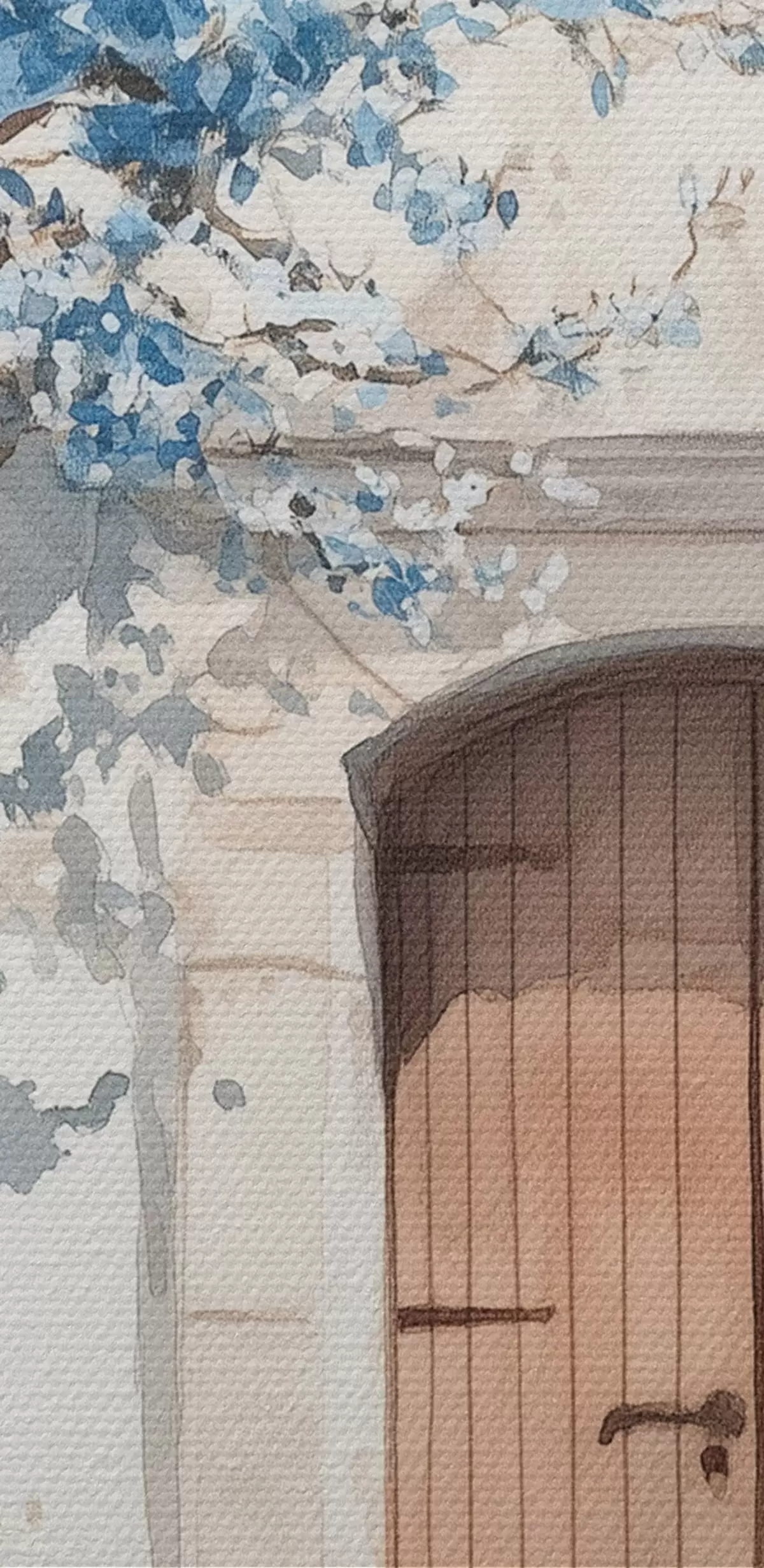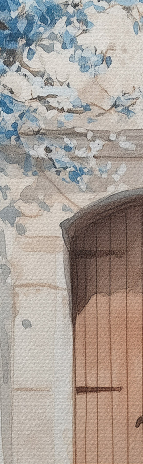 carta da parati Casa greca con bell'albero, architettura, stile acquerello nr. s43178
