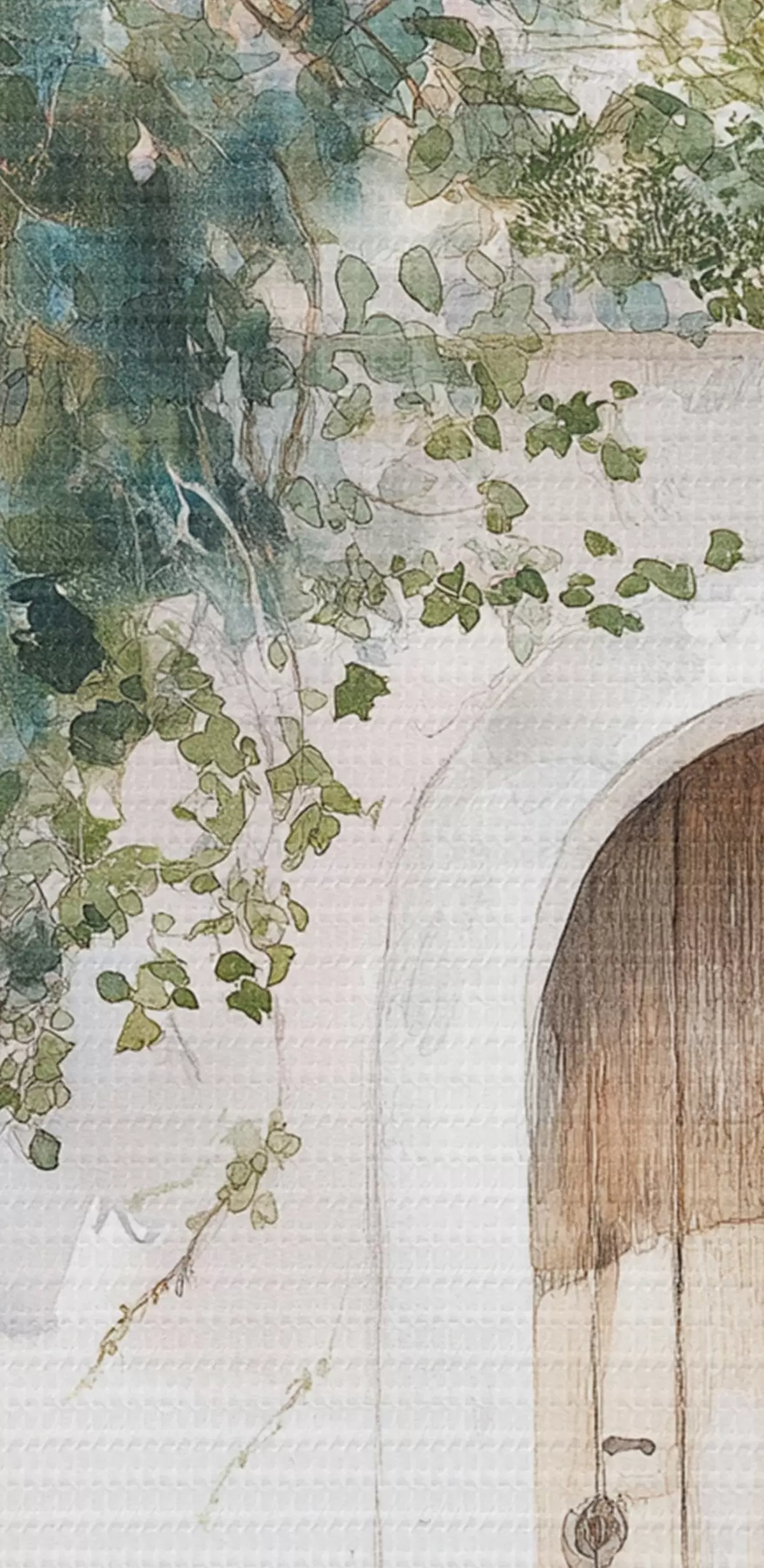 Quadri Bella casa bianca con albero in fiore, stile mediterraneo, acquerello Nr s43179