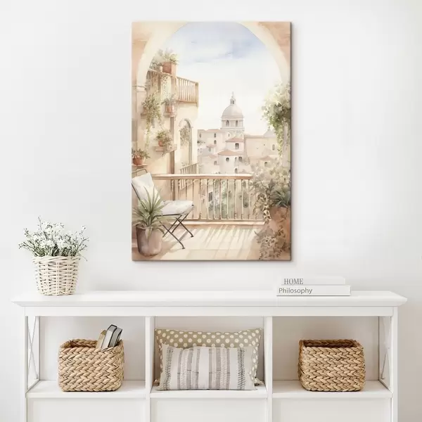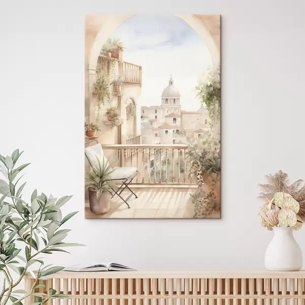 Quadri Balcone estivo estetico, Spagna, architettura antica, blomming, stile acquerello Nr s43180