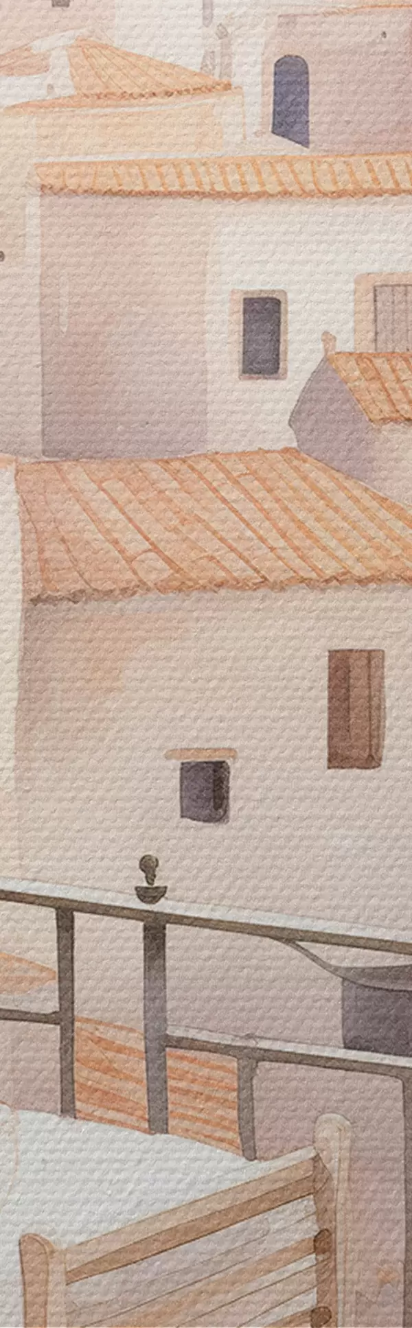carta da parati Tramonto sul balcone, Italia, architettura, fiori in fiore, stile acquerello nr. s43184