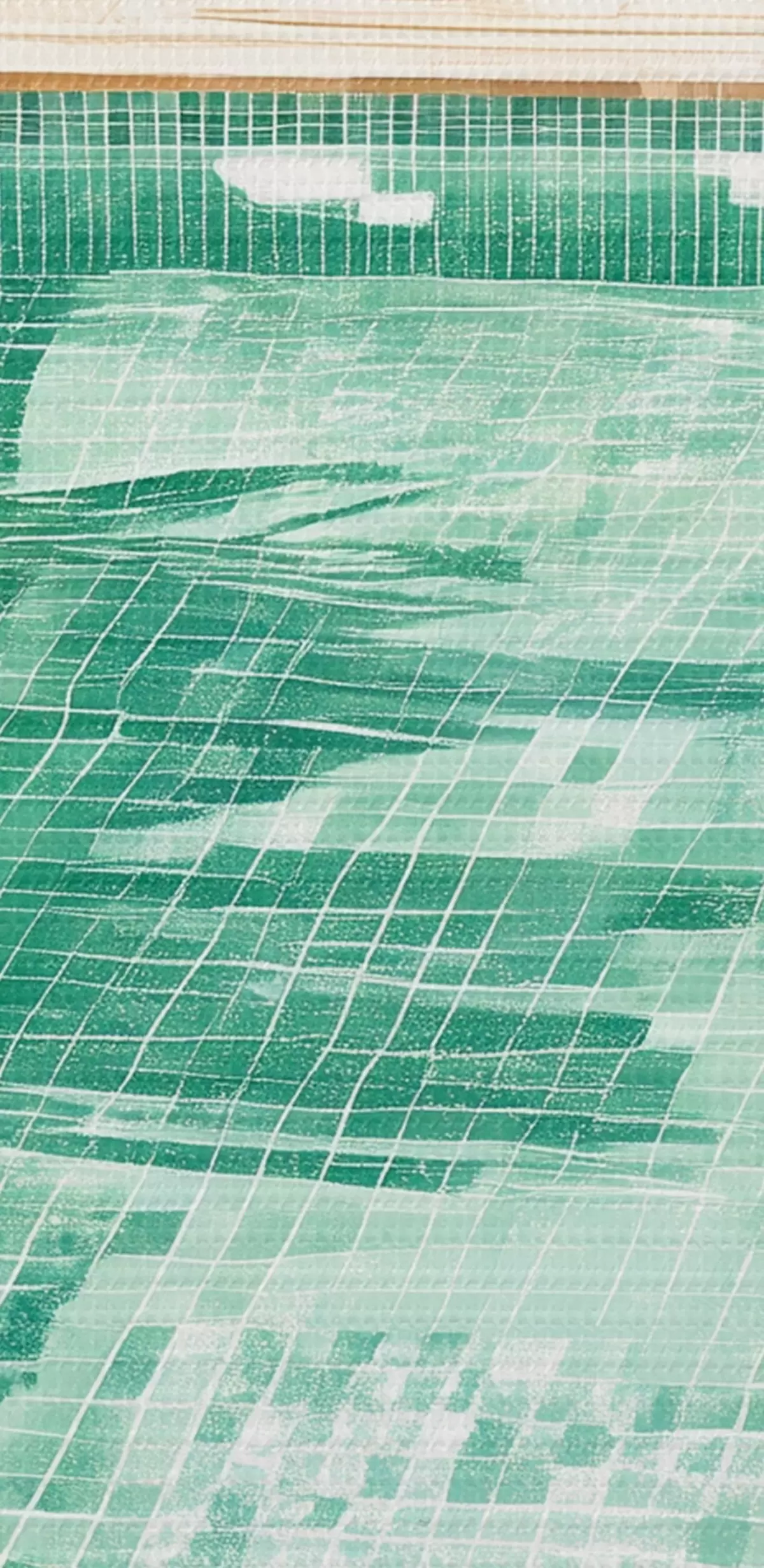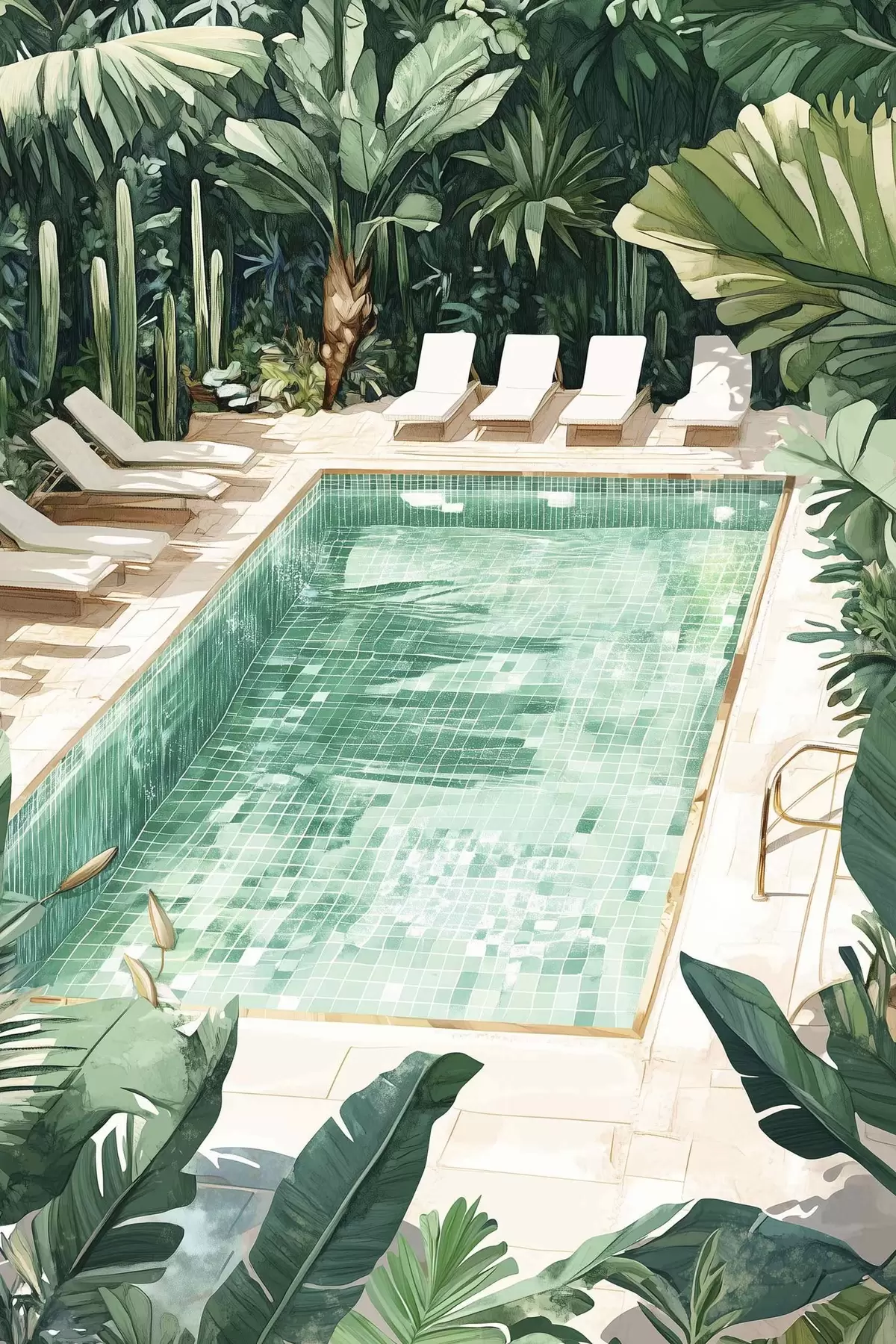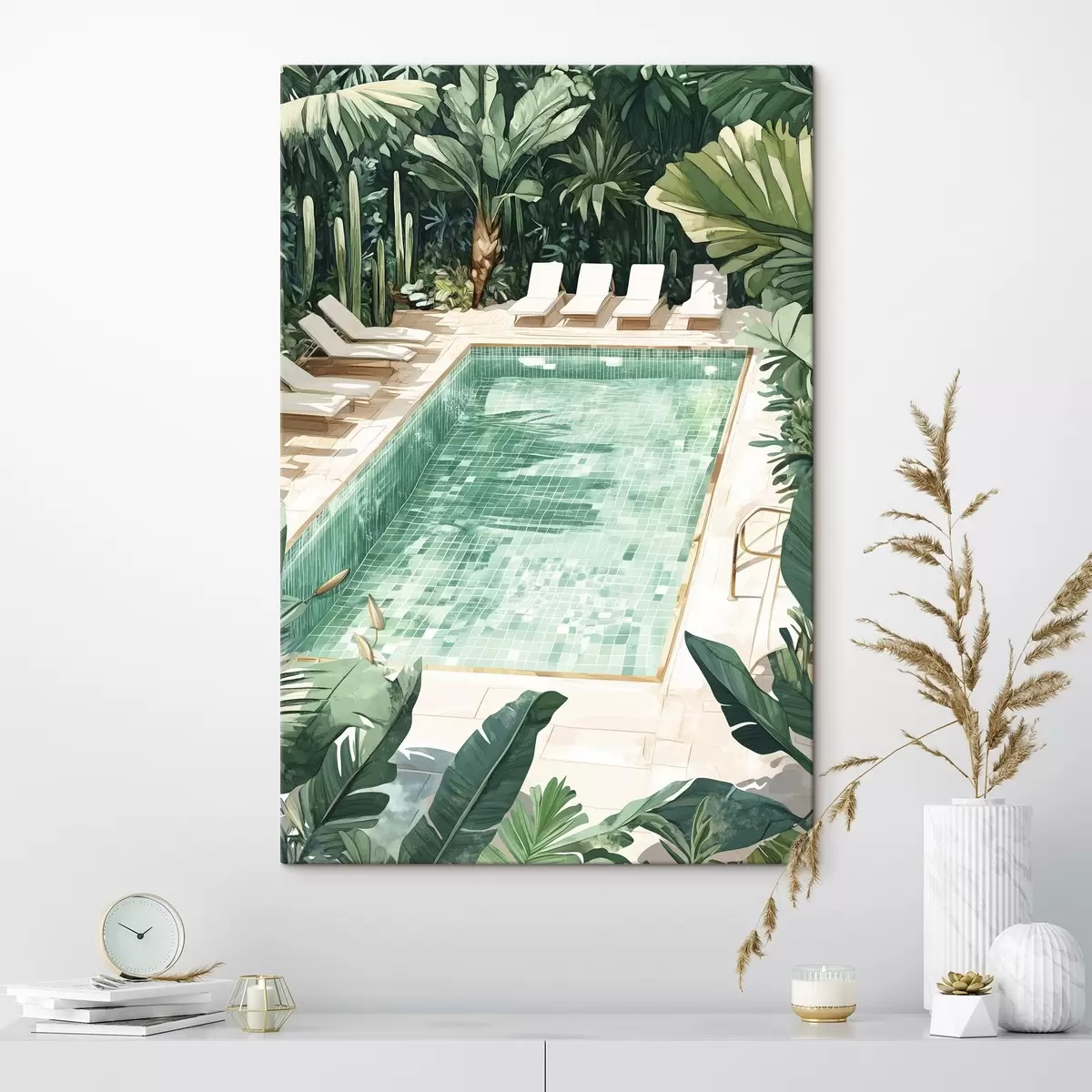 Quadri Piscina estiva nel giardino verde, stile vintage, acquerello Nr s43189