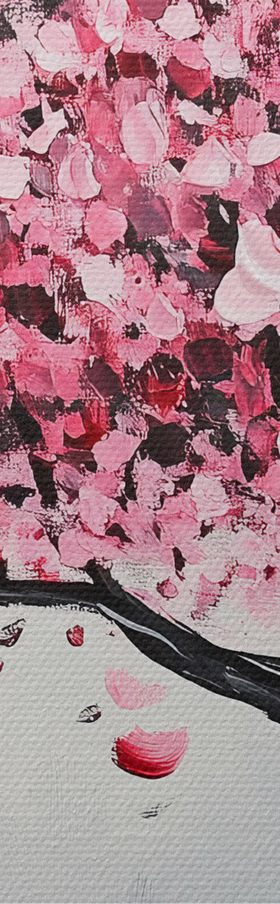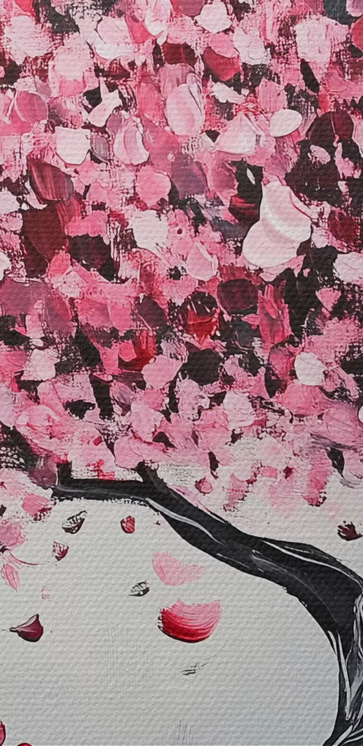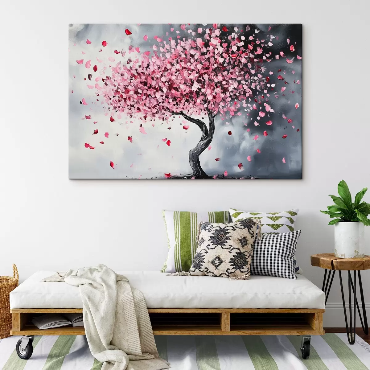 Quadri Albero fiorito rosa su sfondo grigio Nr s43299