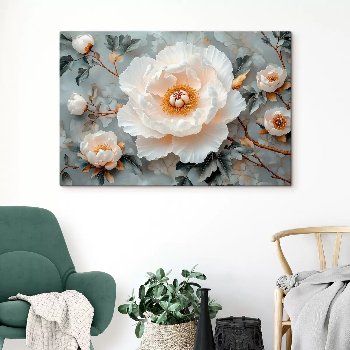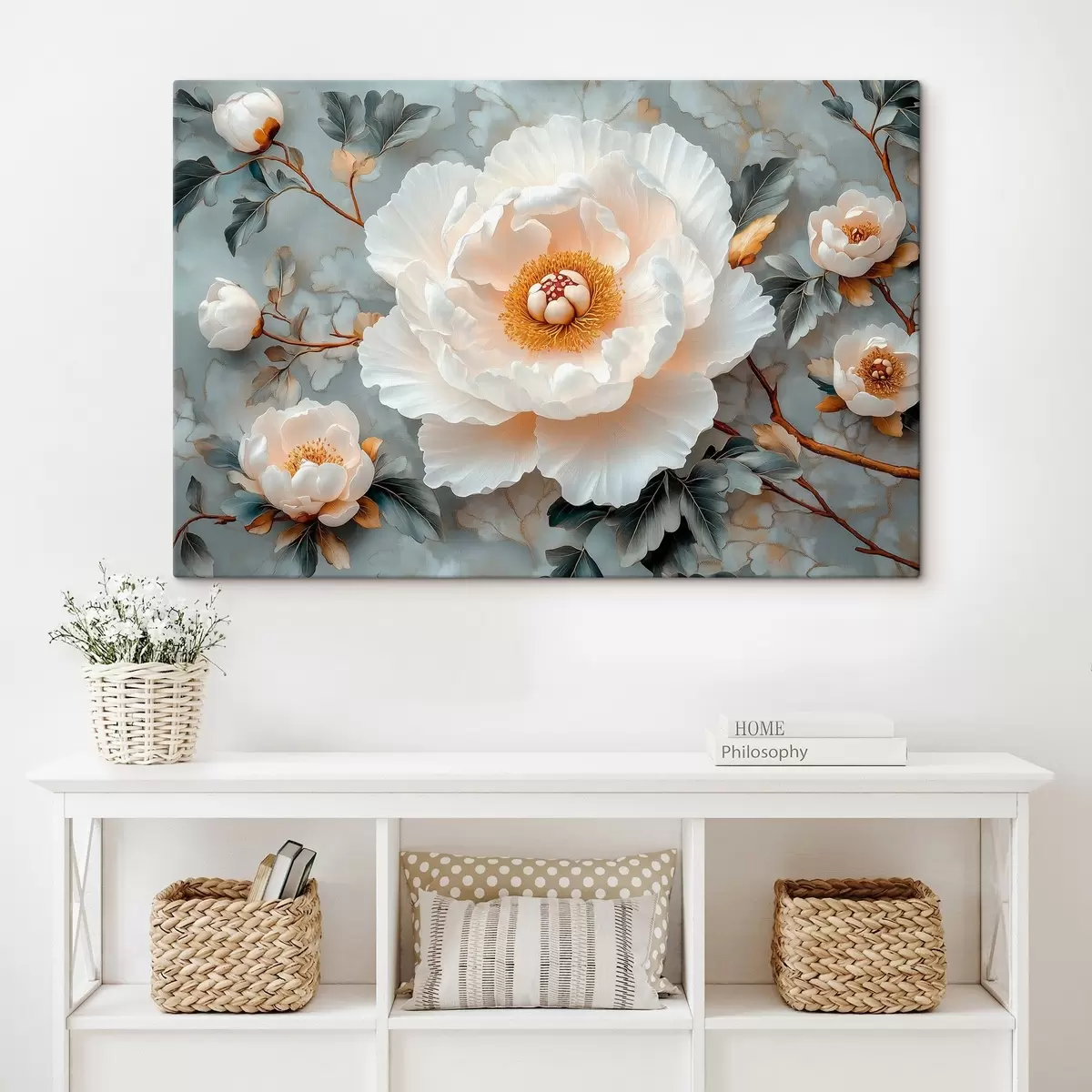 Quadri Una splendida peonia su uno sfondo di foglie e piccole peonie Nr s43315