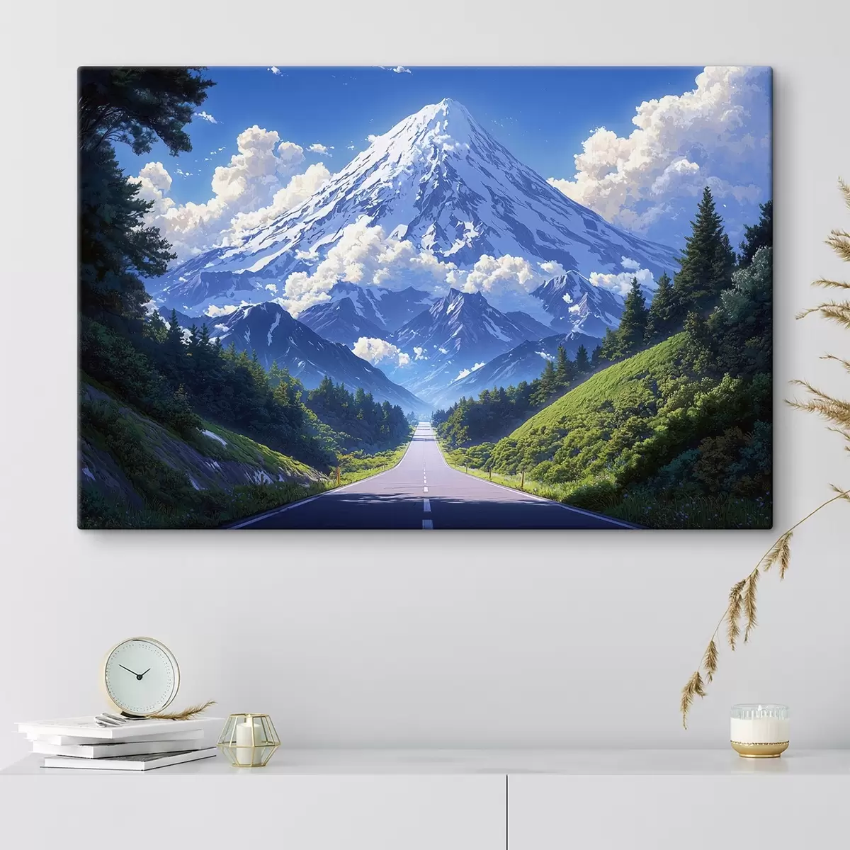 Quadri Strada verso le montagne con nuvole e boschi tutt'intorno Nr s43317