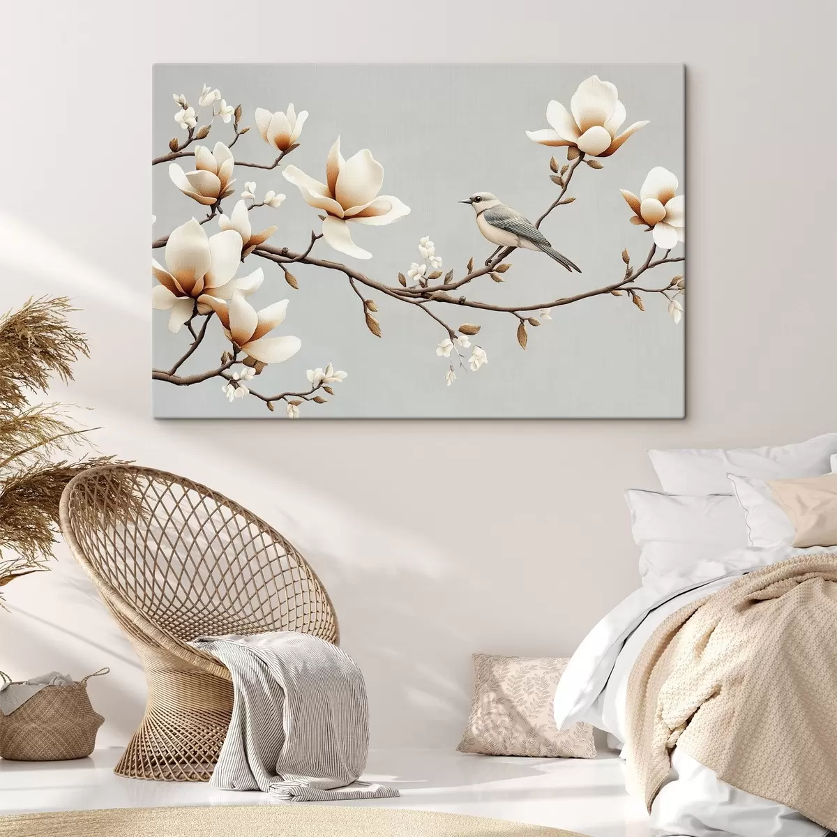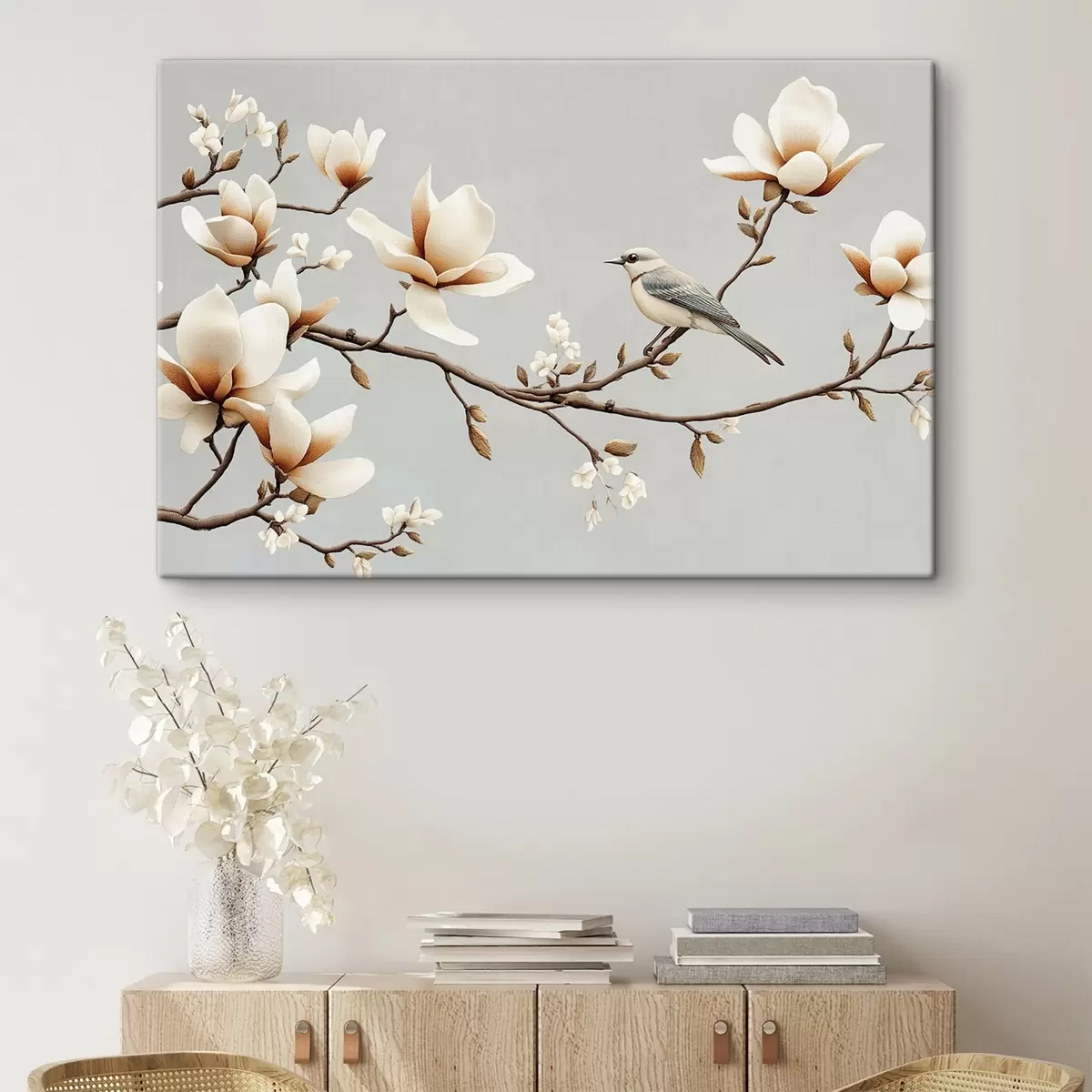 Quadri Uccello su un ramo con magnolie in morbidi colori pastello Nr s43320