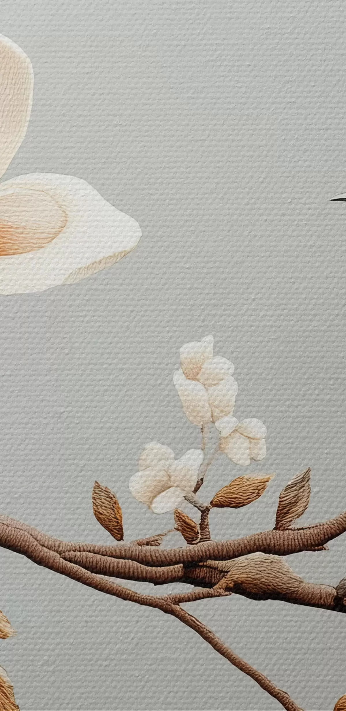 carta da parati Uccello su un ramo con magnolie in morbidi colori pastello nr. s43320