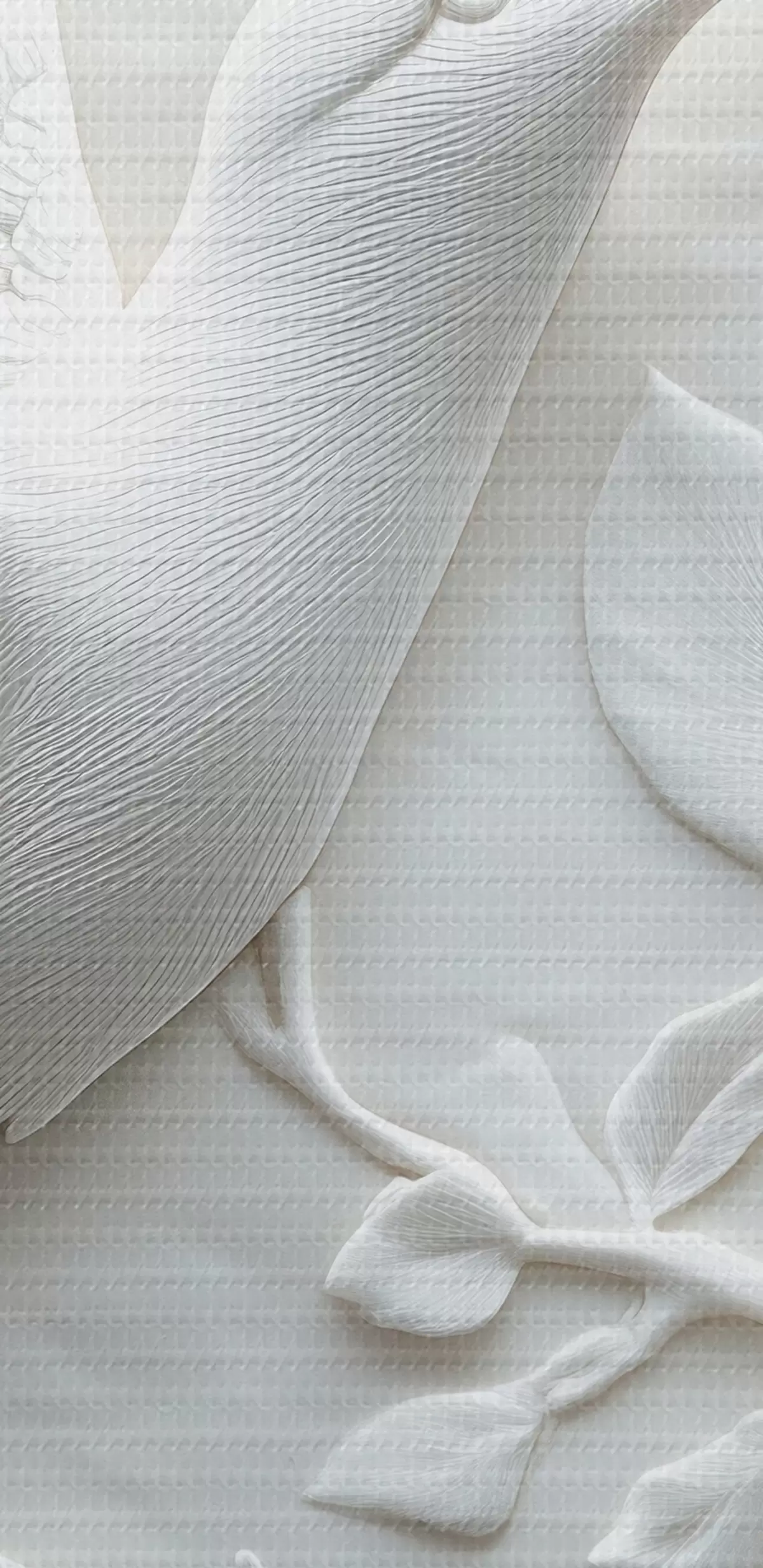 carta da parati Immagine 3d in bianco e nero di un uccello e dei fiori circostanti nr. s43329
