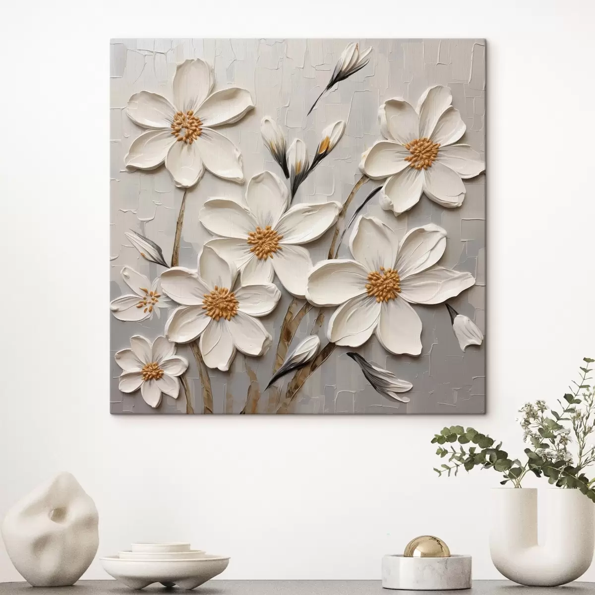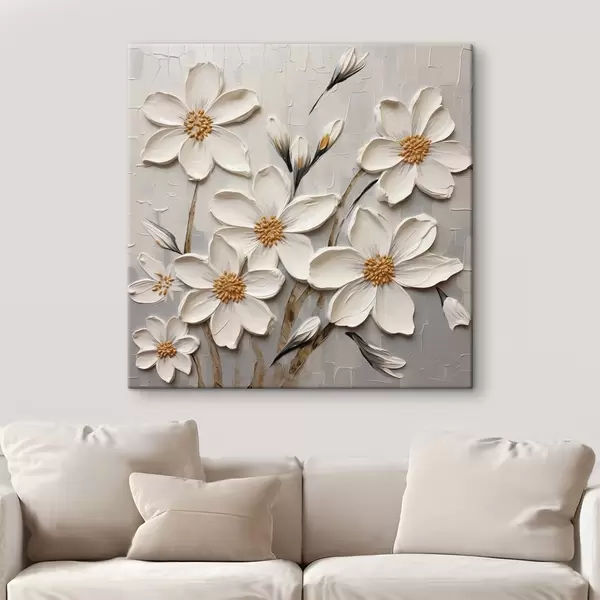 Quadri Fiori bianchi voluminosi in stile pittura con grandi pennellate Nr s43366