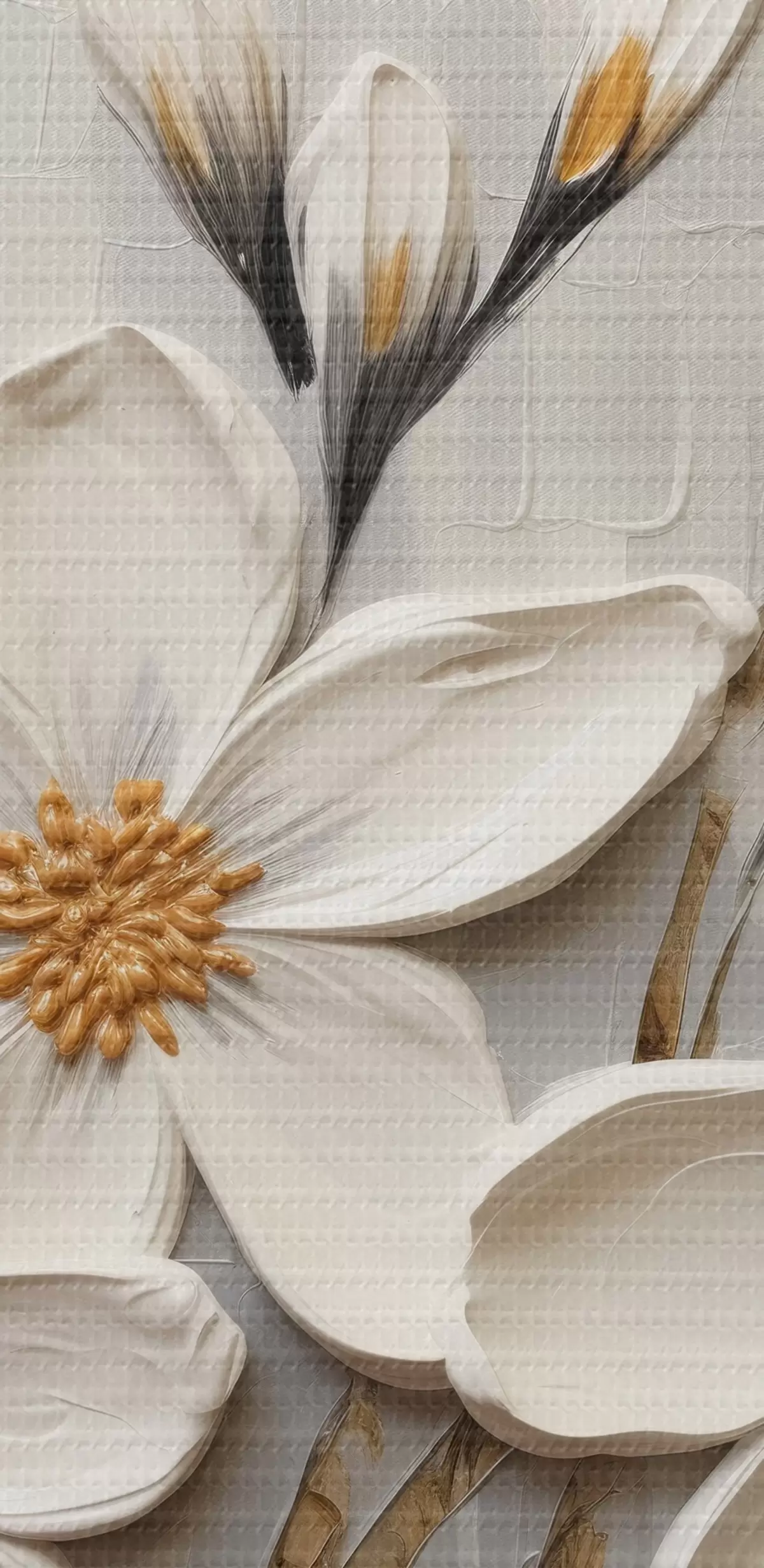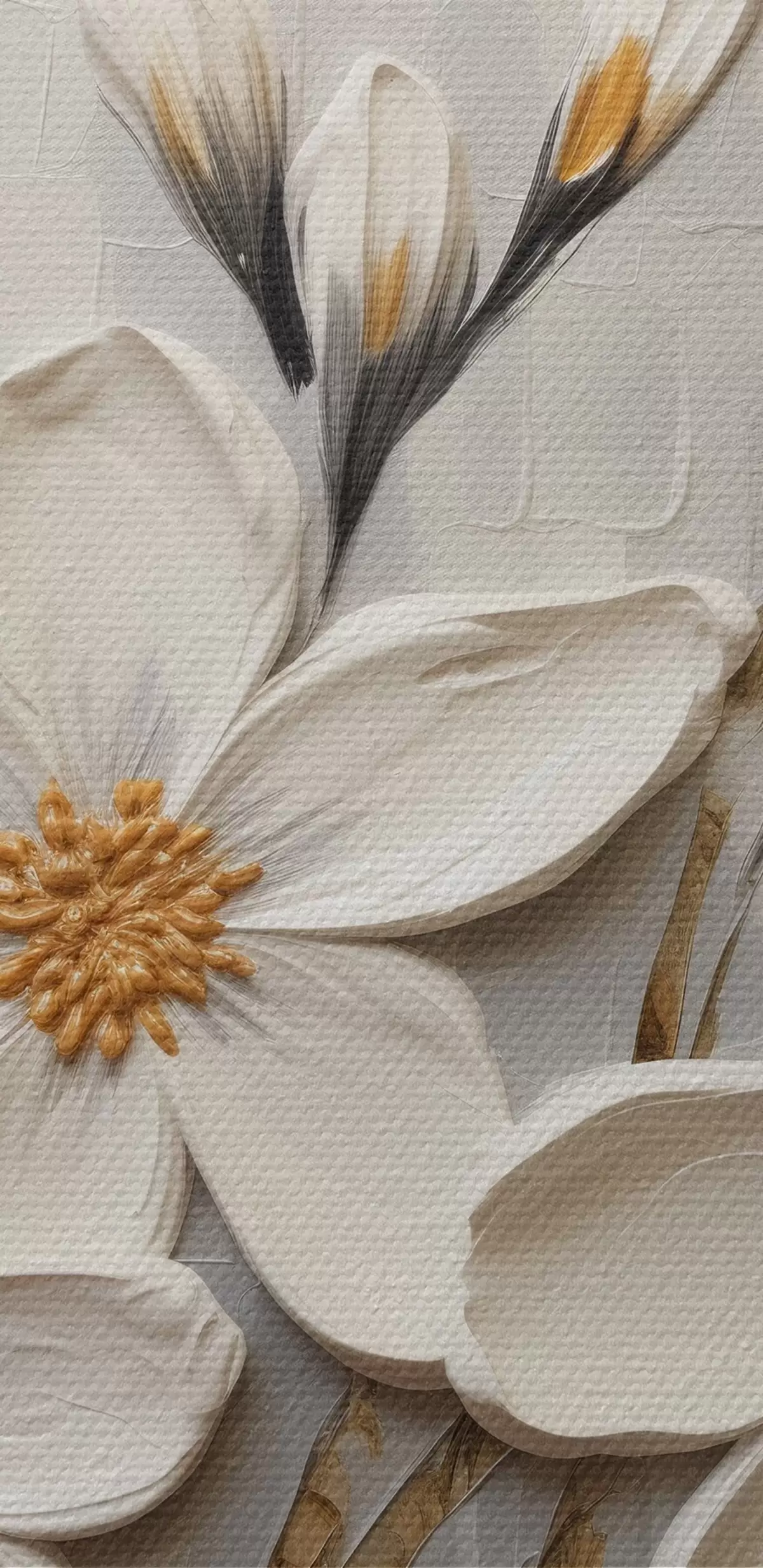 carta da parati Fiori bianchi voluminosi in stile pittura con grandi pennellate nr. s43366
