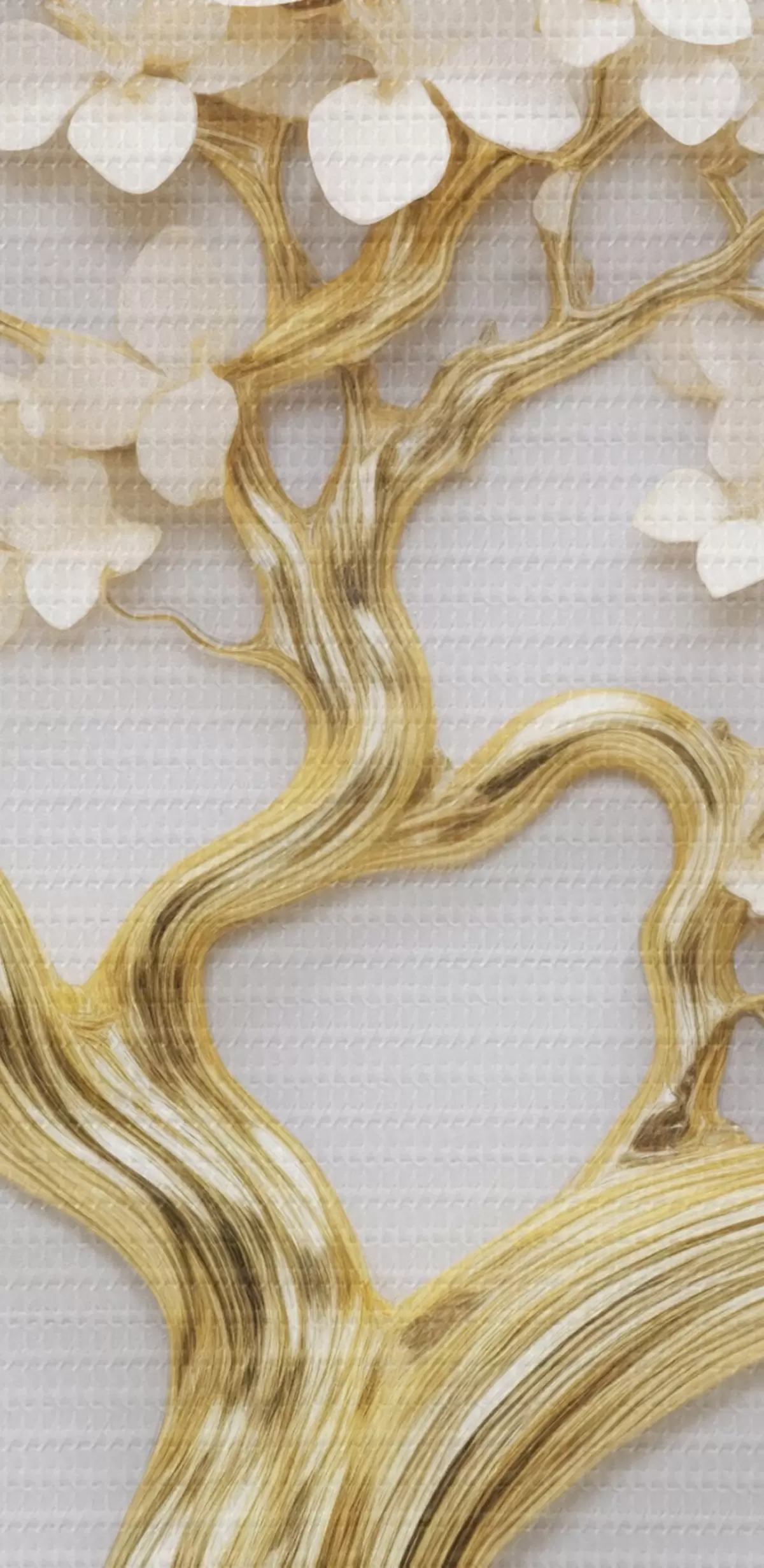 Quadri Albero decorativo con fiori bianchi, sfondo bianco, rocce bianche, dettagli intricati, arte ispirata alla natura Nr s43388