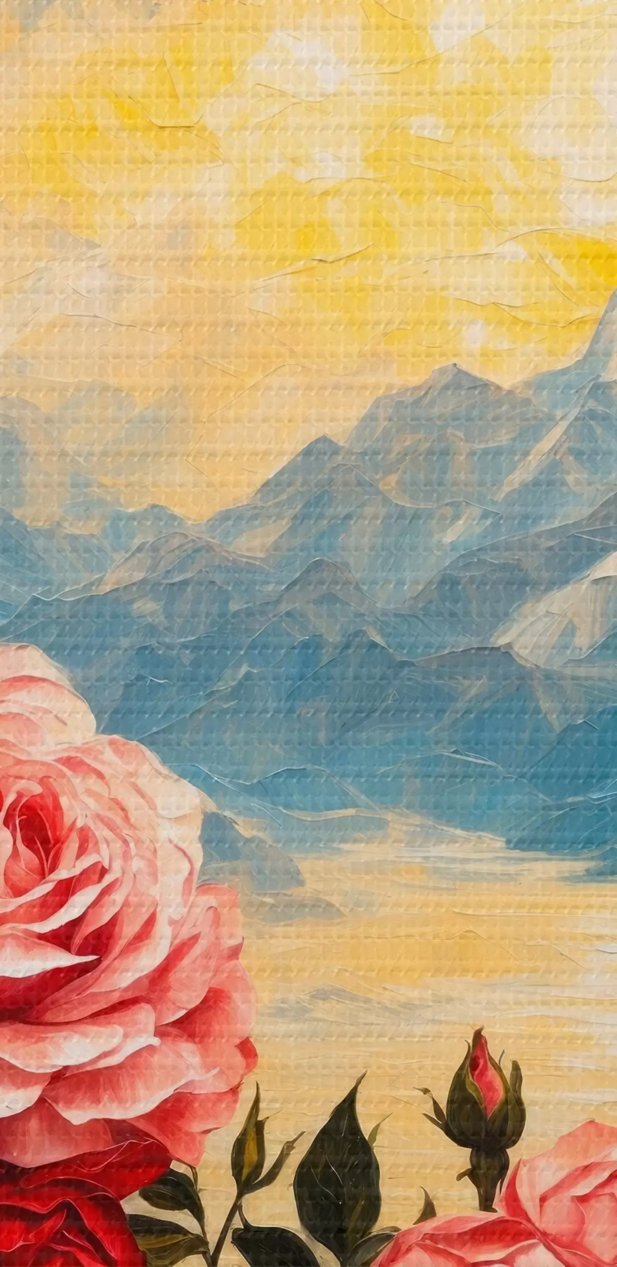 Quadri Rose su sfondo di montagna in stile pittura ad olio Nr s43457