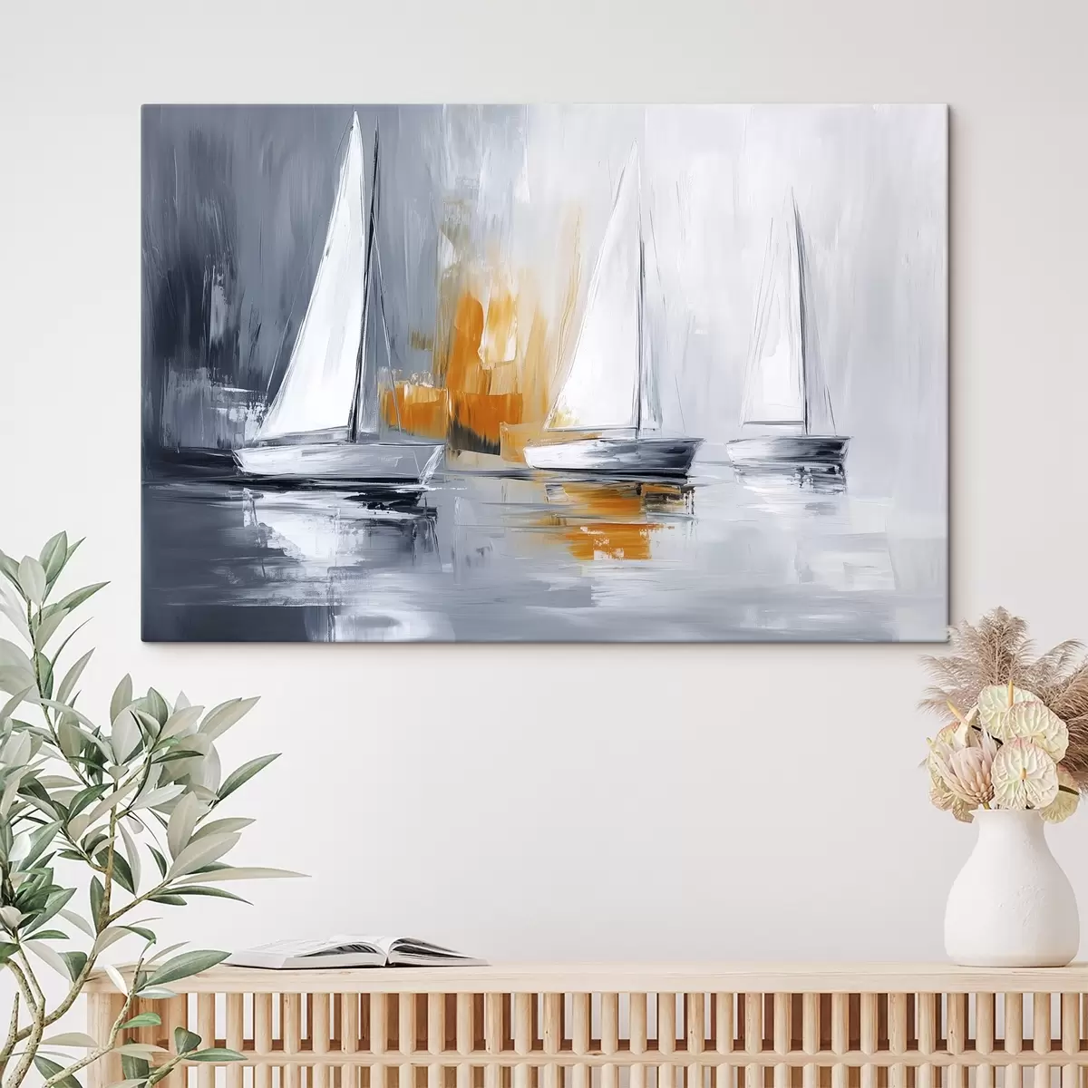 Quadri Barche a vela, astrazione, disegno in stile acrilico, grigio e arancione Nr s43499