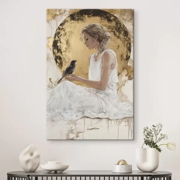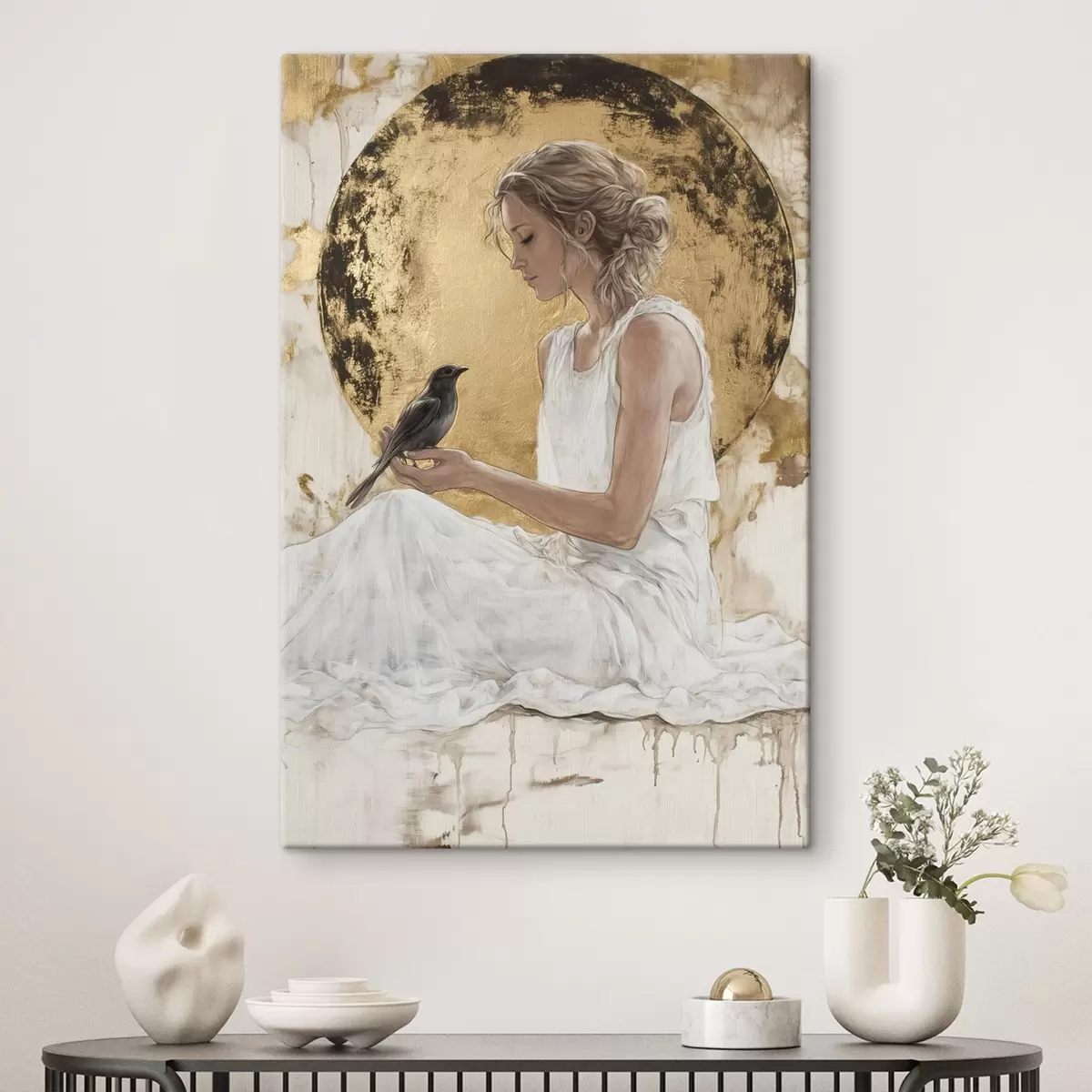 Quadri Bella donna con uccello, Grecia, disegno in stile acrilico Nr s43503