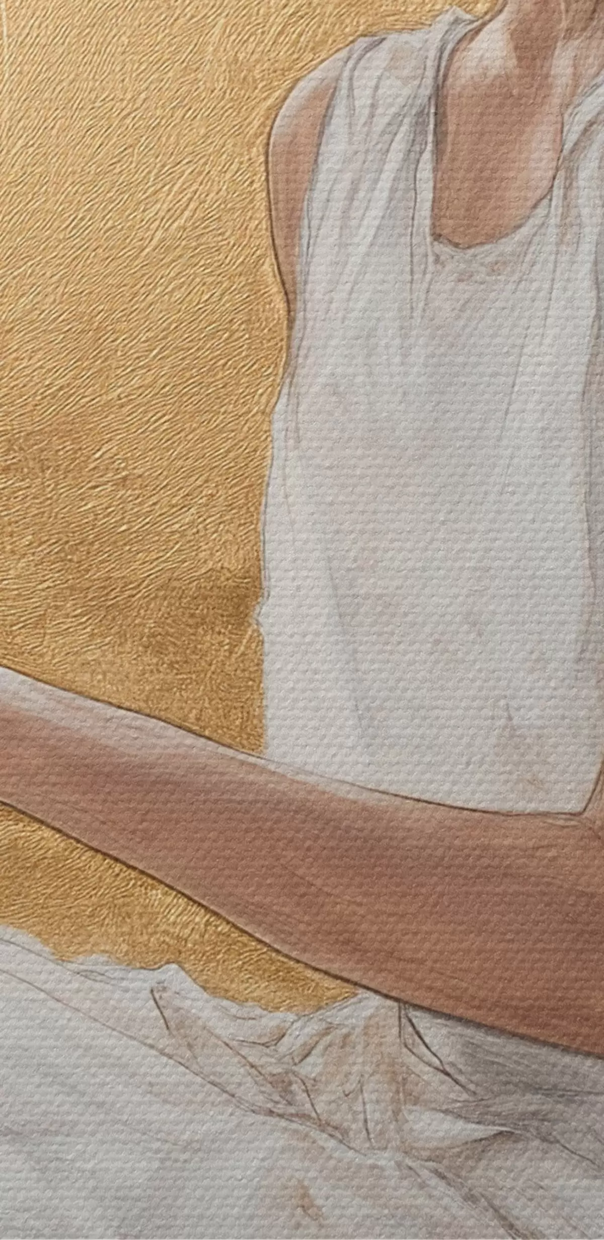 Per tendere la tela su barelle senza danneggiare l'immagine, utilizziamo l'immagine specchiata.